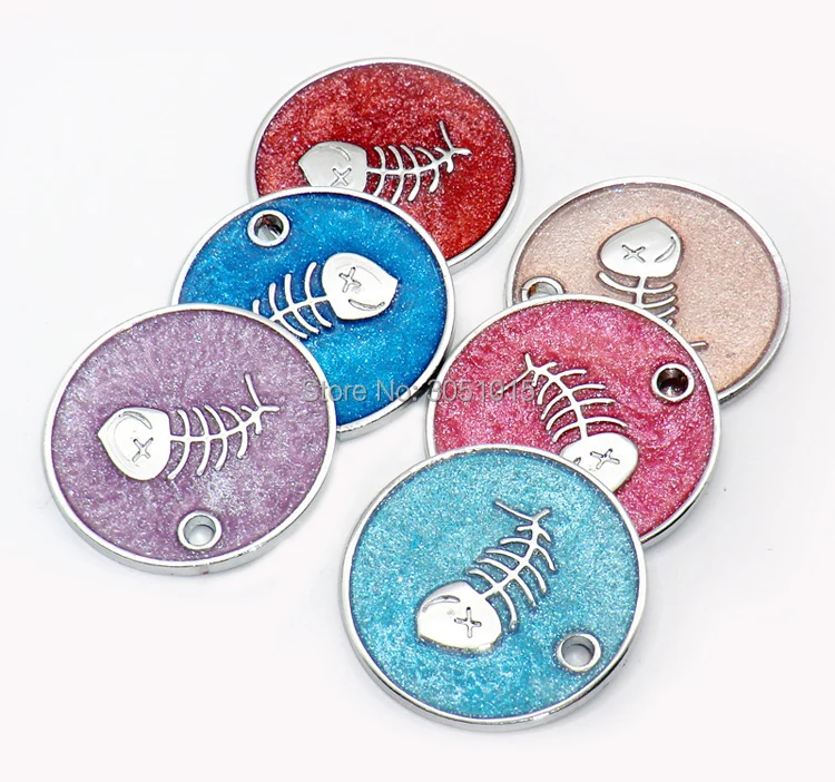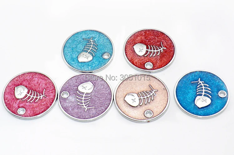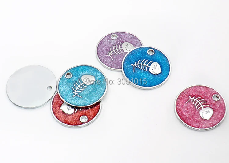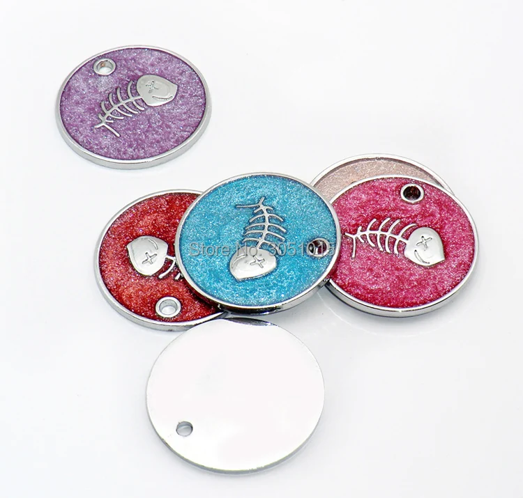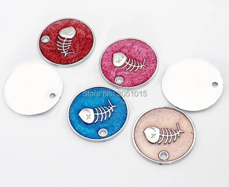 Venta al por mayor, 20 Uds., etiqueta de identificación personalizada para perros, etiquetas personalizadas para mascotas, etiquetas en blanco grabadas, colgante redondo con placa de identificación para mascotas y peces para perros