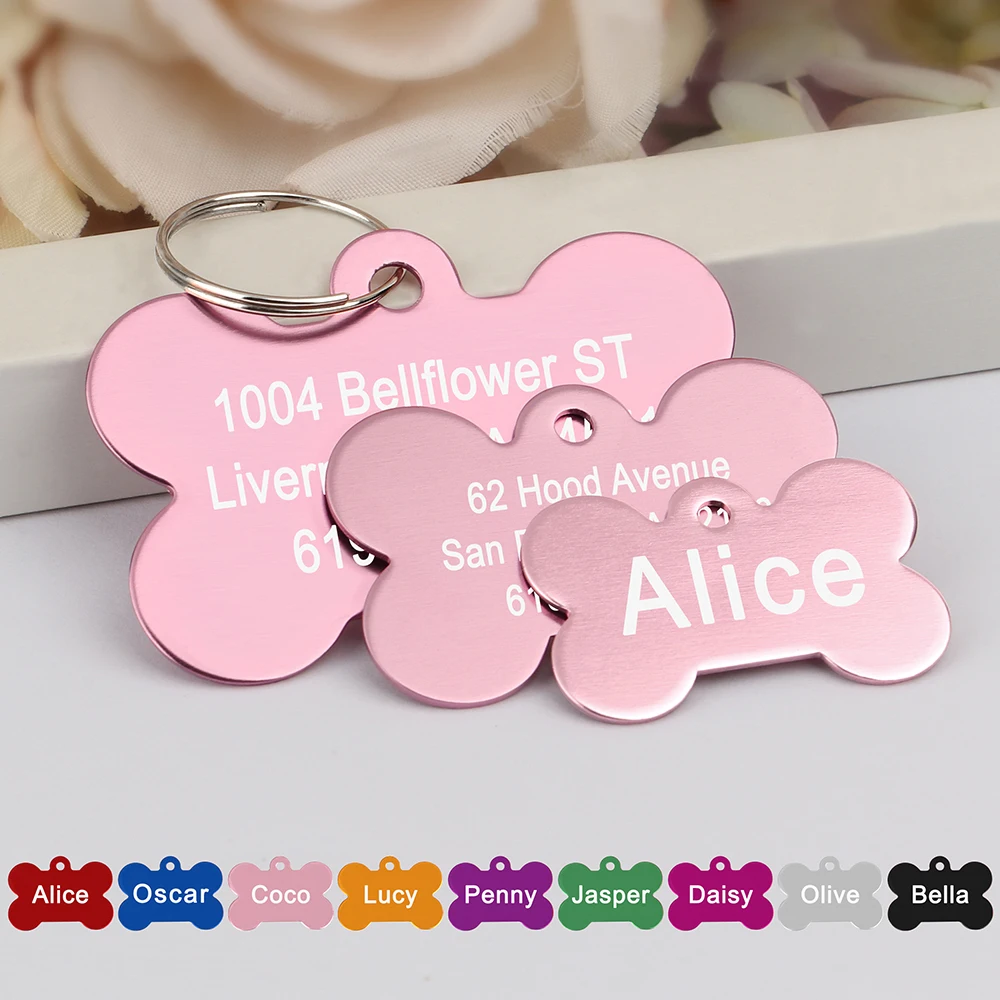 Nombre: Etiqueta de identificación personalizada para perros y gatos, accesorios personalizados de collar de gatito y cachorro de hueso de aleación, etiquetas de nombre antipérdida para mascotas para perros pequeños y grandes y gatos