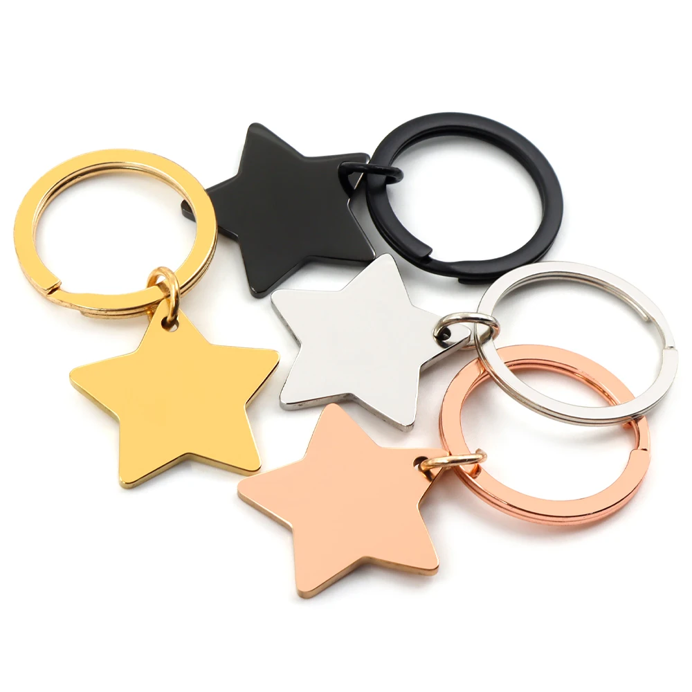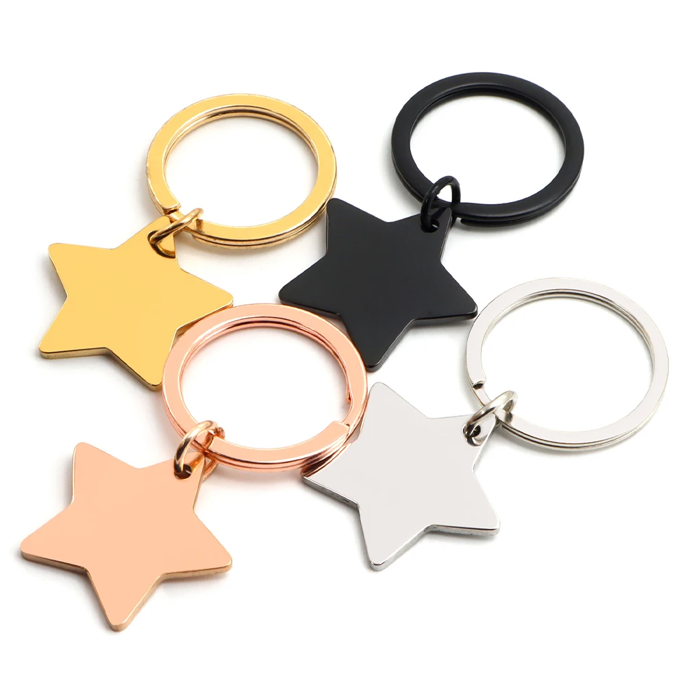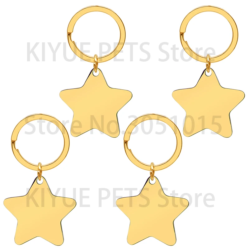 20 Uds. Etiqueta de Metal en blanco con forma de estrella para mascotas con llavero, placa de nombre de perro de acero inoxidable, colgante de acero, accesorios para hacer joyas