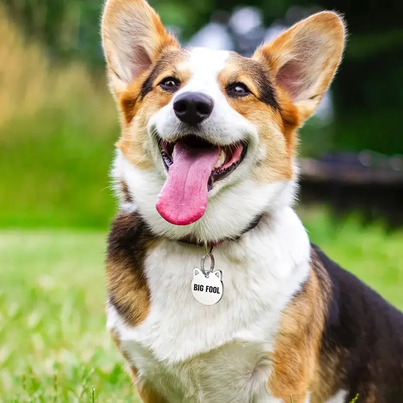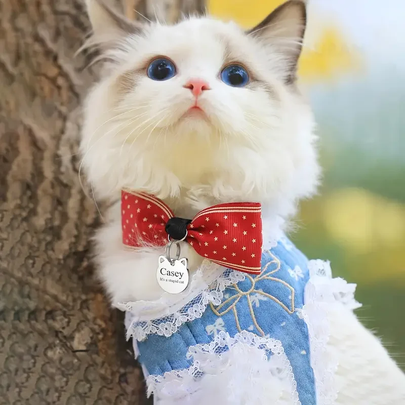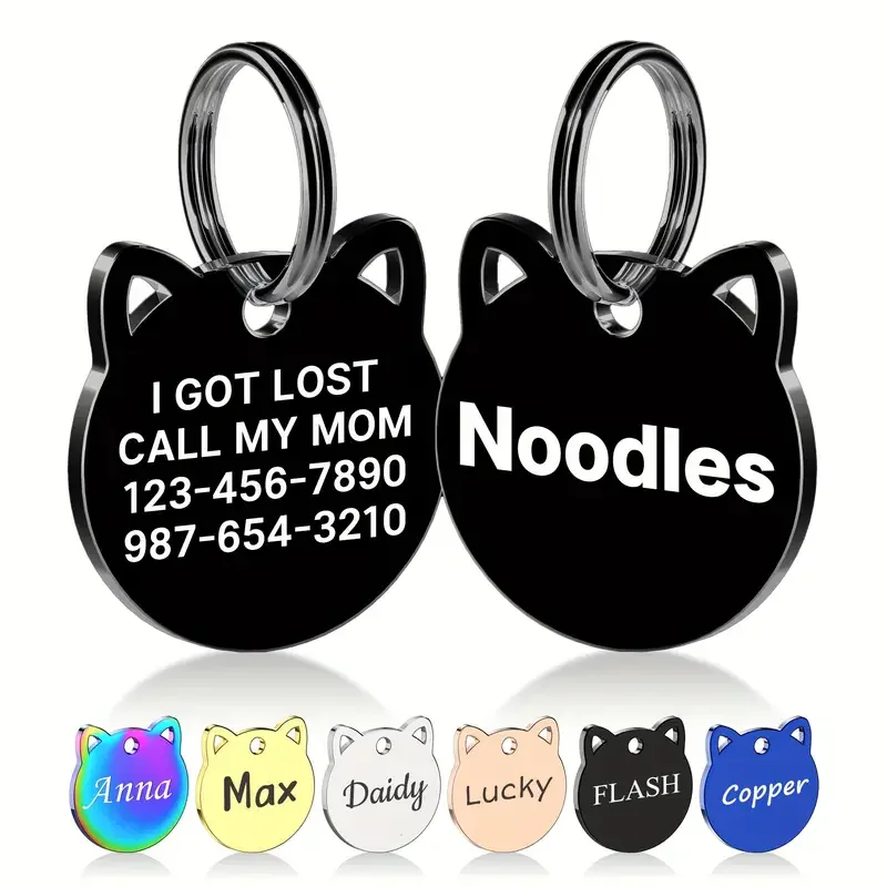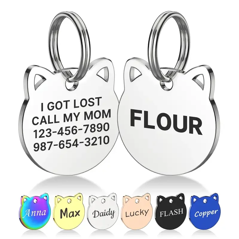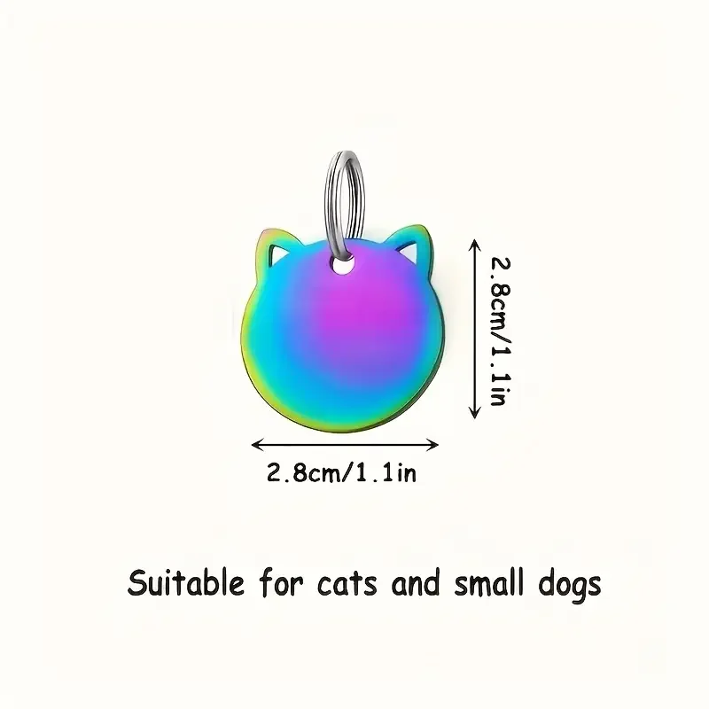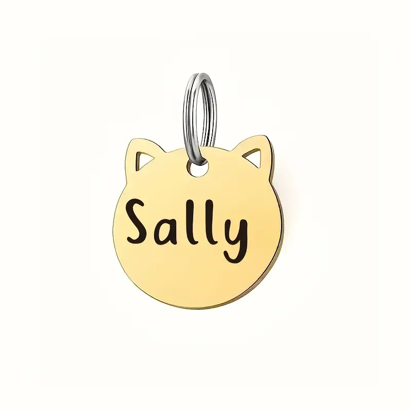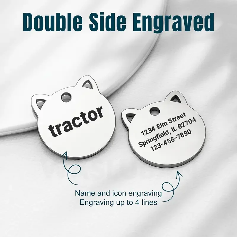 Etiqueta con nombre de gato pequeño de acero inoxidable personalizada con diseño de perro y gato grabado, etiqueta de perro pulida con diseño de cabeza de gato