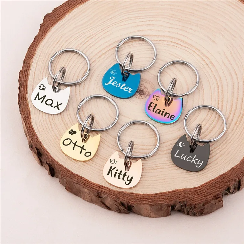 Etiqueta de nombre de gato personalizada, Etiqueta de perro antipérdida en forma de gatito de Metal personalizada para Collar de gato, etiquetas de identificación de perro lindo grabado gratis