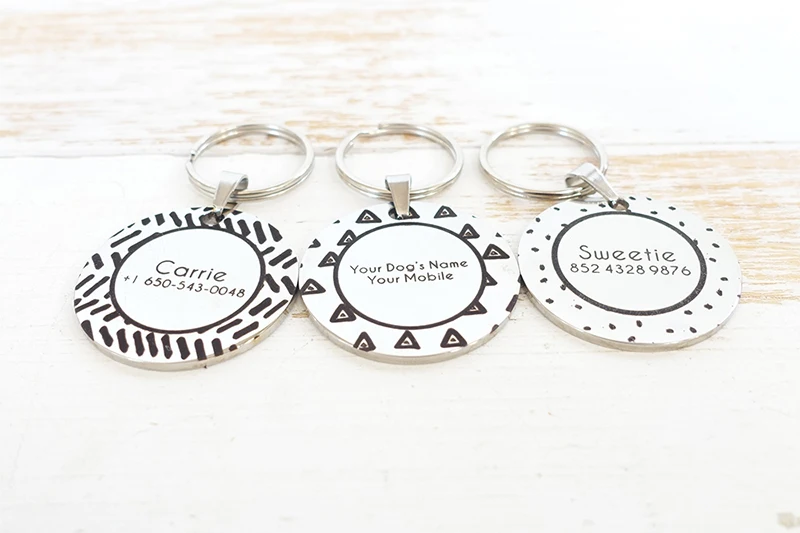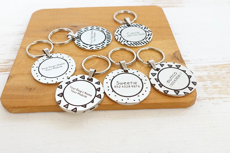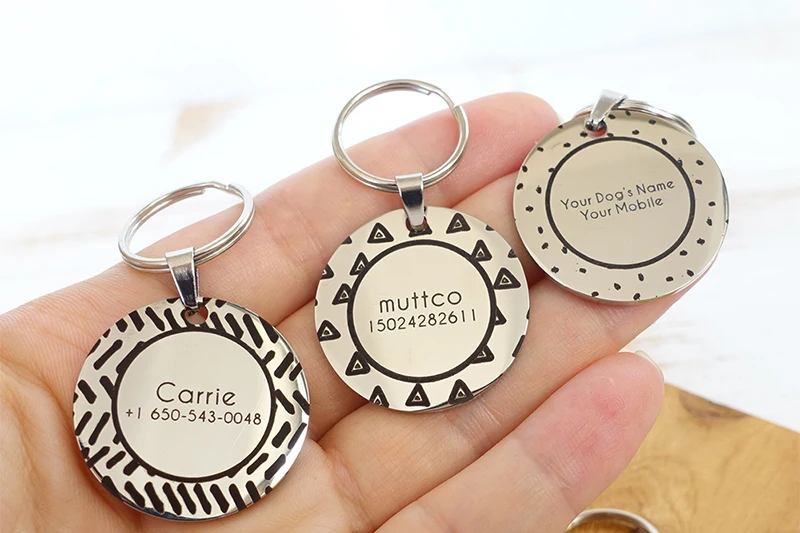Etiqueta redonda para perro de acero inoxidable de diseño personalizado, letrería gratuita, nombre de cangrejo, etiqueta para perro, 3 estilos