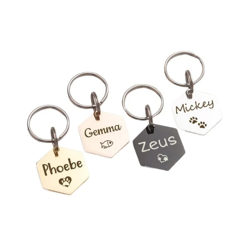 Etiqueta hexagonal para perro de acero inoxidable personalizada con ícono divertido, nombre personalizado, Collar para perro y gato, accesorios, placa de identificación antipérdida