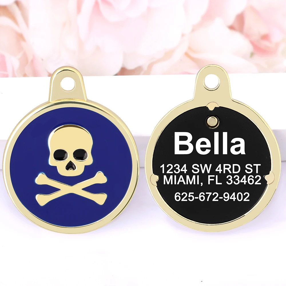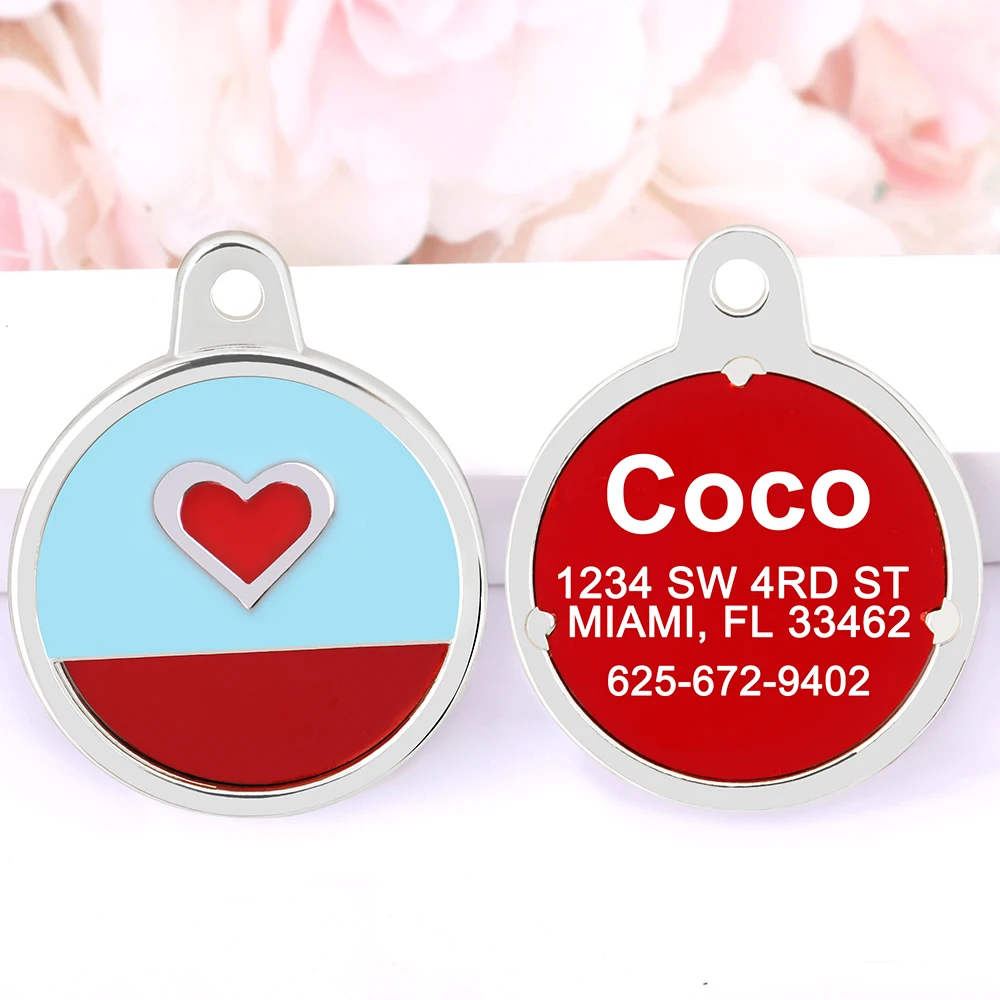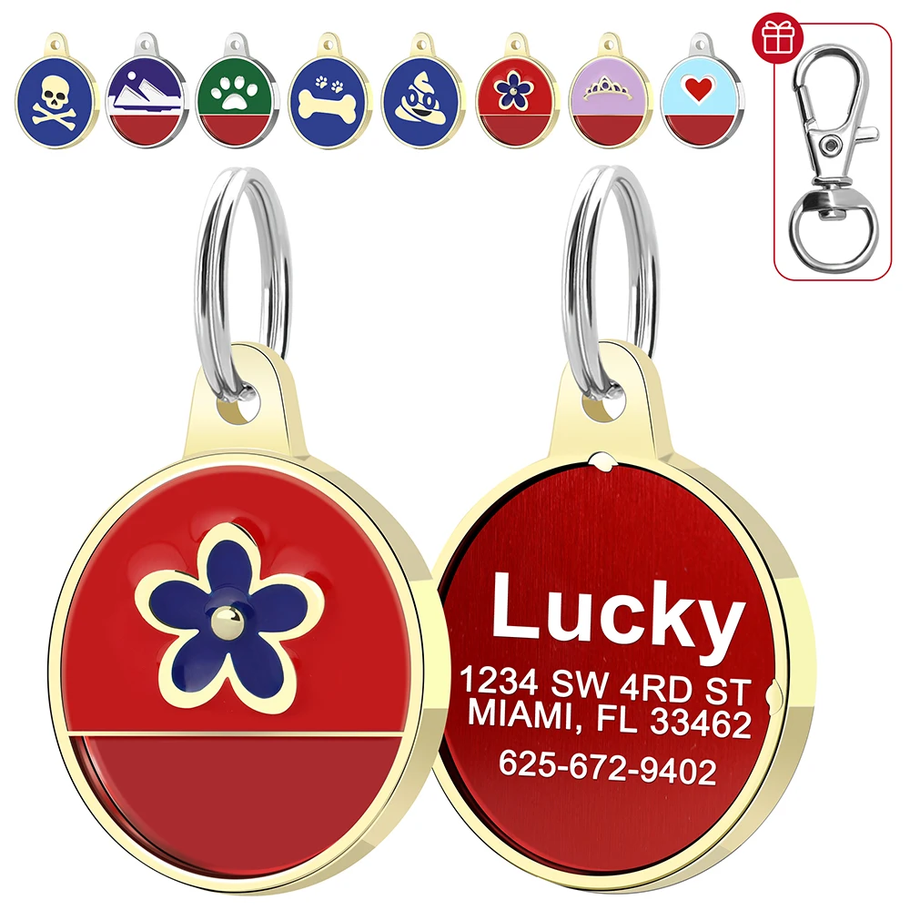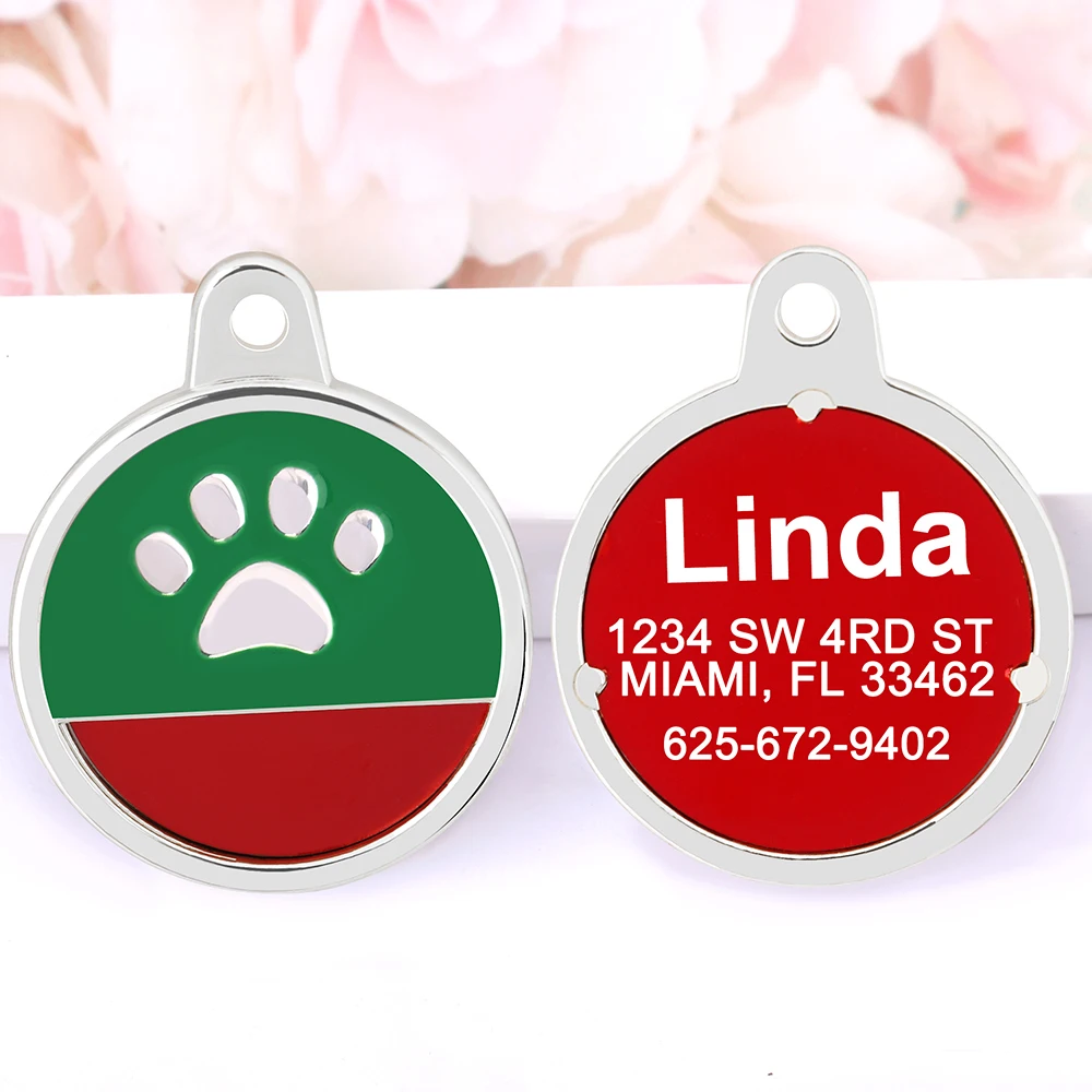 Etiqueta de perro personalizada en 8 colores, placa de identificación grabada gratis para mascotas, colgante con huella de hueso, estampado Floral de corazón para perros y gatos, etiquetas de nombre