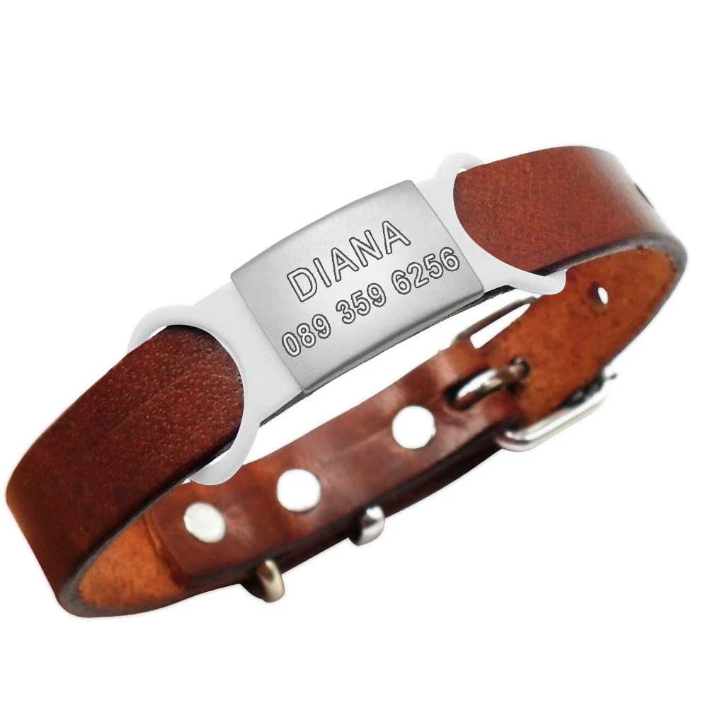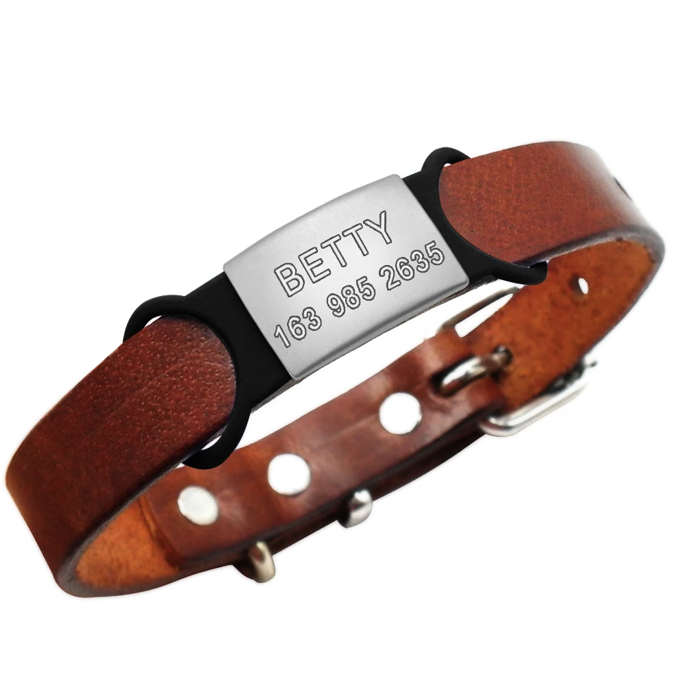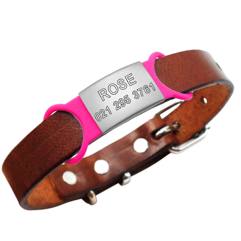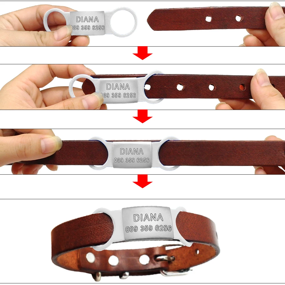 - Material: la etiqueta de acero inoxidable no se oxida. Hebilla de goma súper elástica, adecuada para collares de diferentes tamaños.