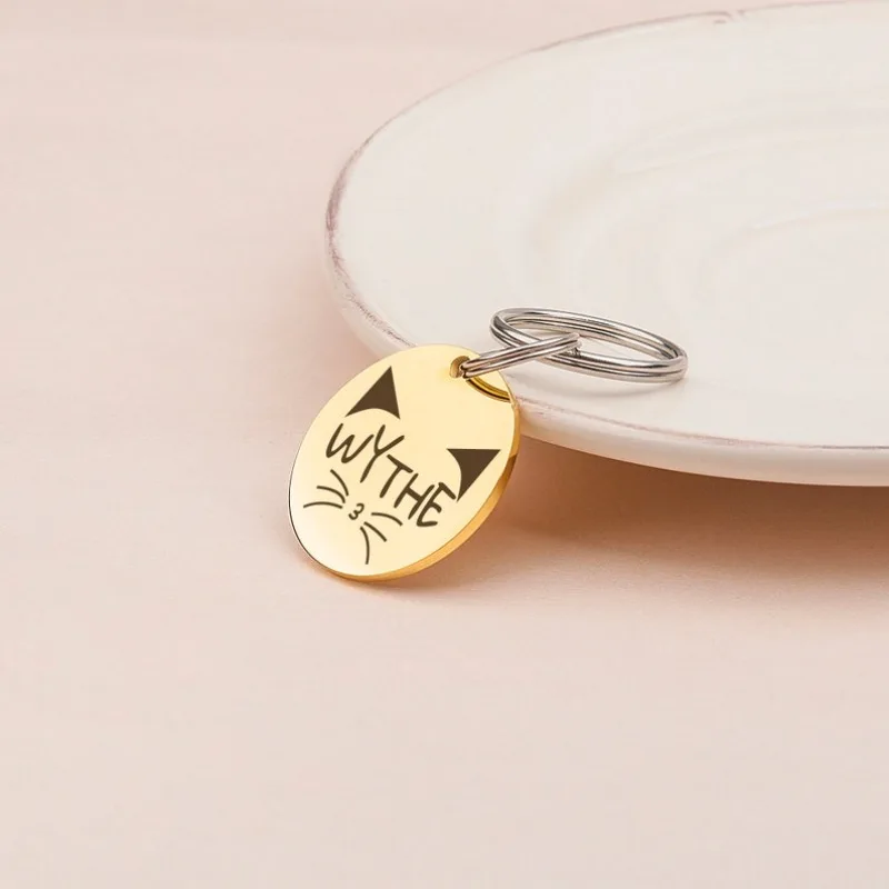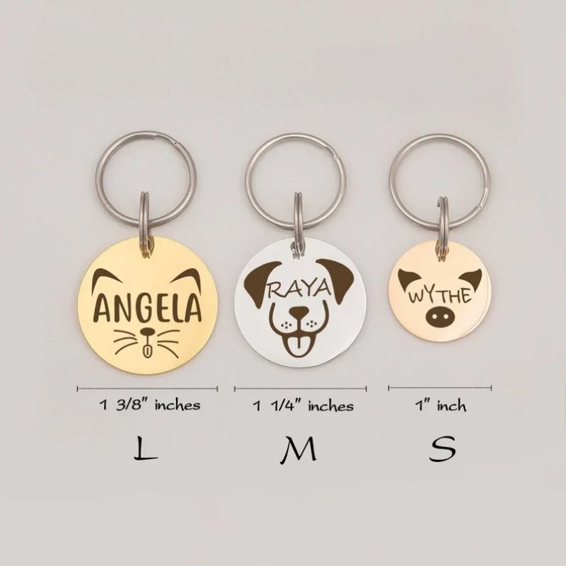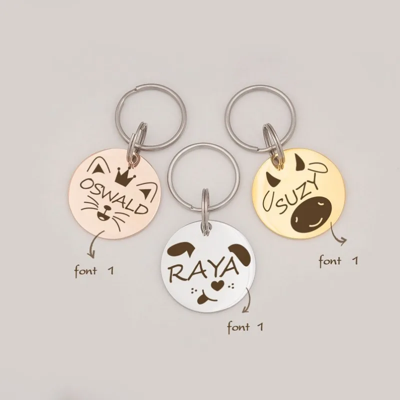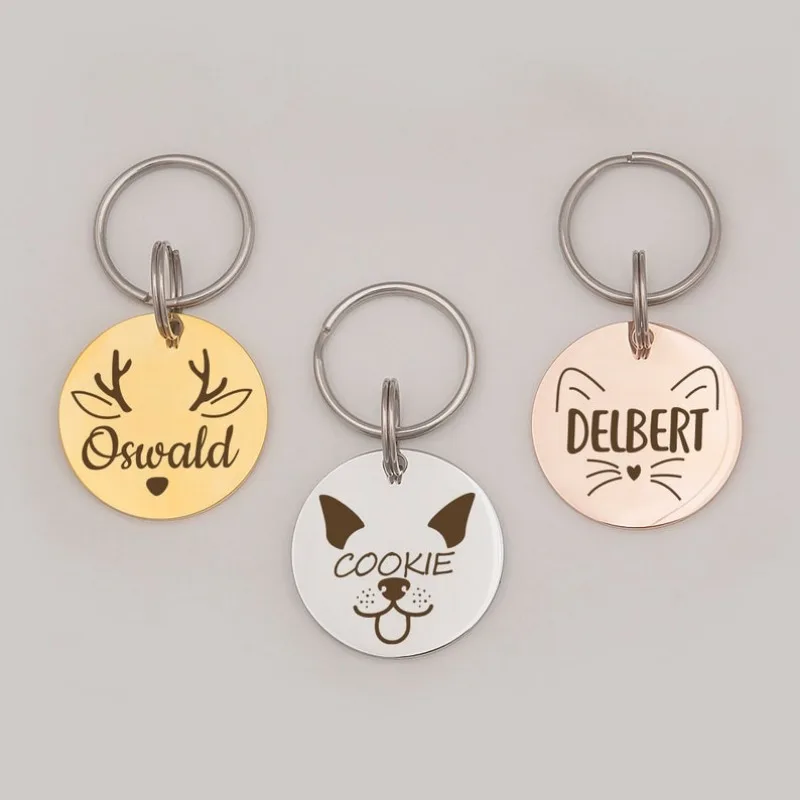 Etiqueta personalizada con nombre de perro y gato grabada con cara de mascota divertida etiqueta de identificación antipérdida colgante de acero inoxidable para etiqueta de collar de perro y cachorro y gato