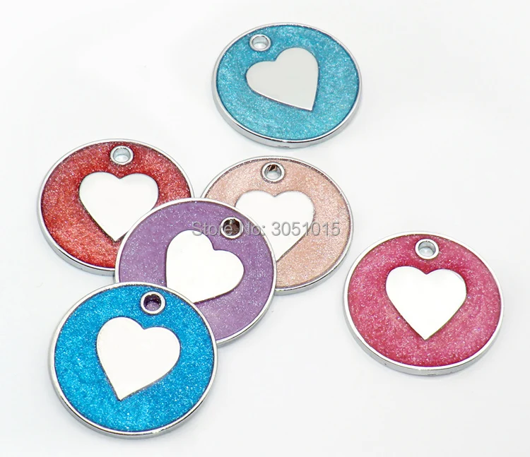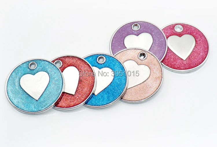 Venta al por mayor 100 Uds. Etiquetas de identificación de perro con corazón redondo