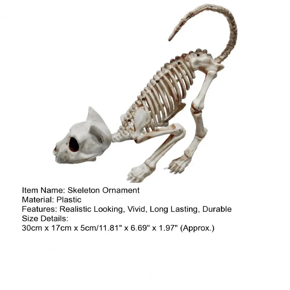 Material de alta calidad adoptado, este adorno realista de esqueleto de gato tiene las ventajas de alta durabilidad, impermeabilidad, resistencia a la intemperie, resistencia a la decoloración y robustez, por lo que puede usarlo durante mucho tiempo.