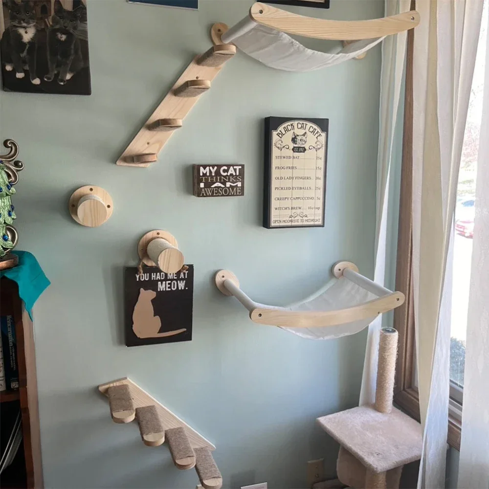 Este paraíso de pared exclusivo para gatos es perfecto para colocar en áreas como la sala de estar, el dormitorio o el balcón, proporcionando un espacio seguro y divertido para que los gatos se muevan.
