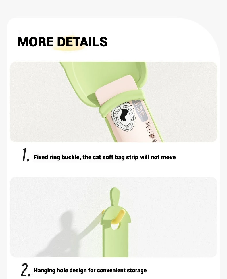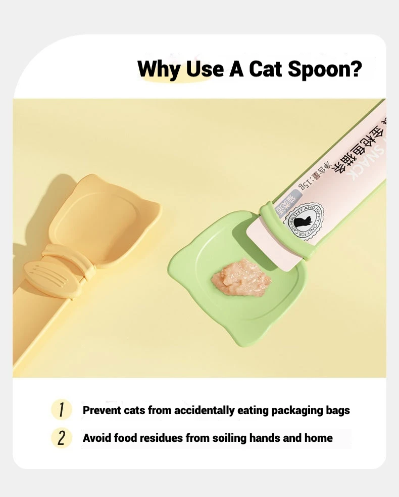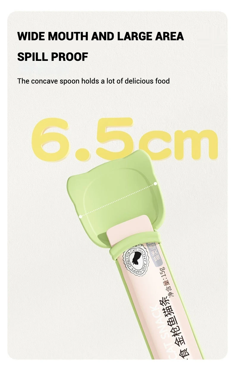 🌟 3. Mango largo versátil: El mango largo está cuidadosamente diseñado para adaptarse a una amplia gama de tamaños de tiras para gatos.Su longitud extendida proporciona el agarre perfecto, asegurando que cada última pieza de comida sea fácilmente accesible.Dígale adiós a las luchas y dé la bienvenida a una solución de alimentación que se adapte a todas las necesidades de su gato.