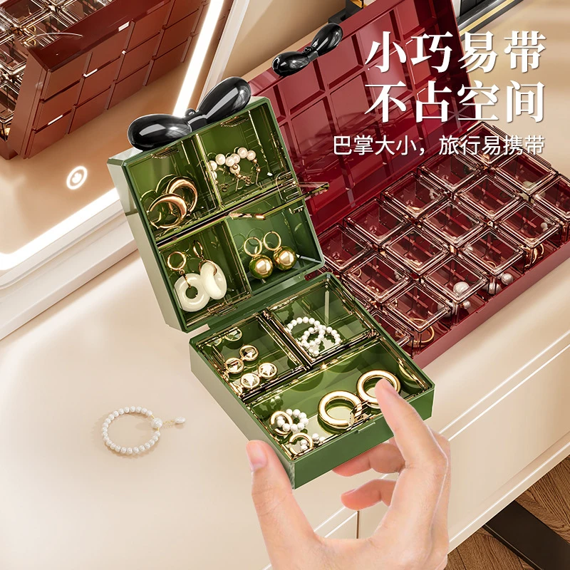 Exquisito joyero portátil pequeño • Organizador antideslustre para collares/pendientes • Estuche para accesorios de anillos multifuncional