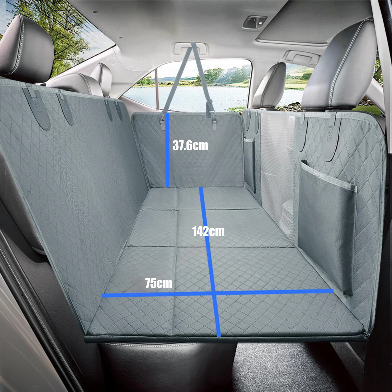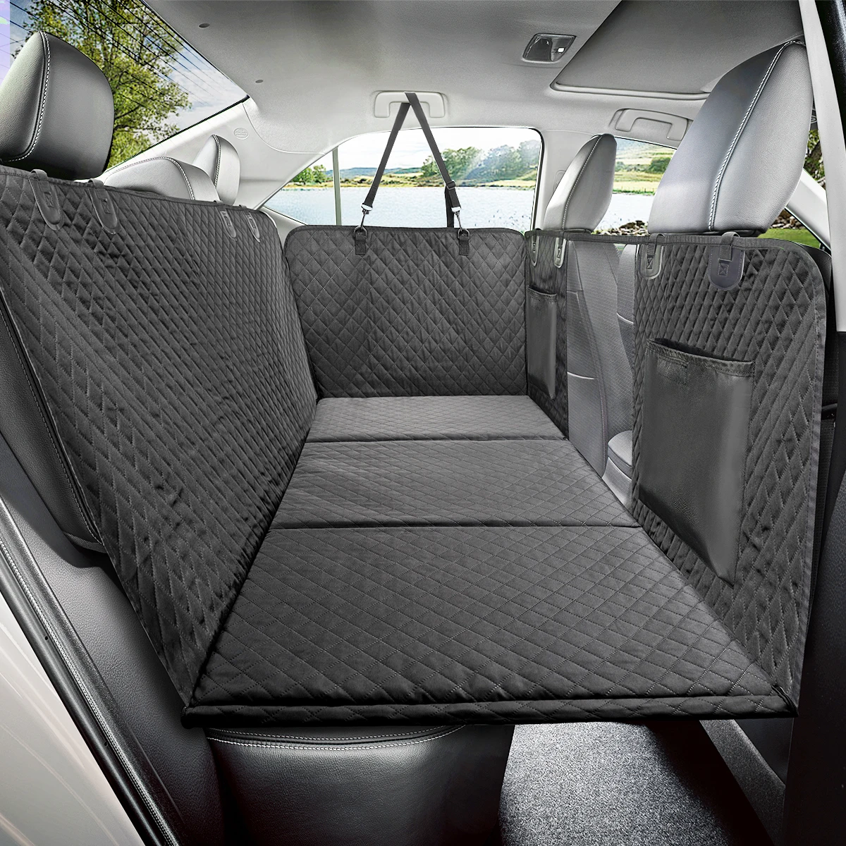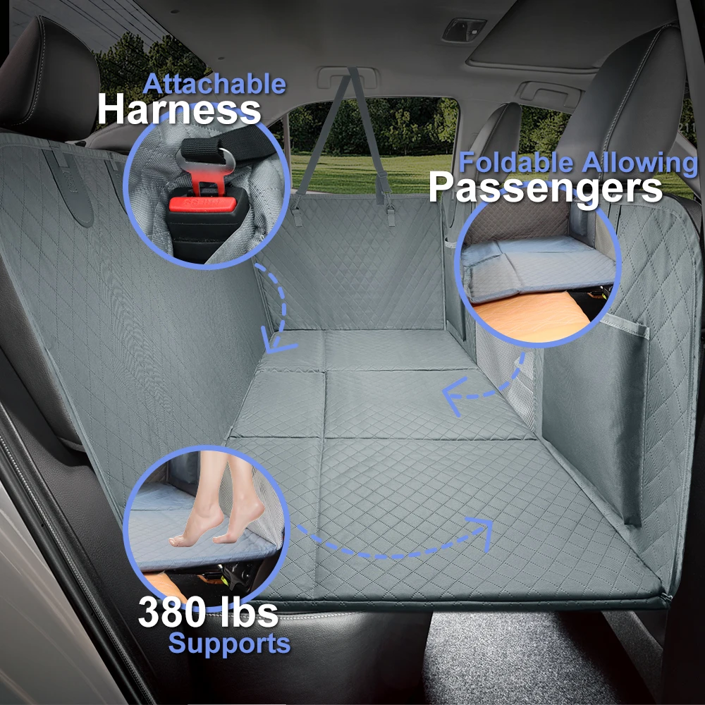 Adecuada para una amplia gama de vehículos, incluidos F150 /RAM 1500/ Toyota/ Tundra/ GMC/ camiones y la mayoría de los SUV, esta funda para asiento de automóvil para perros es un accesorio versátil y práctico para los dueños de mascotas.