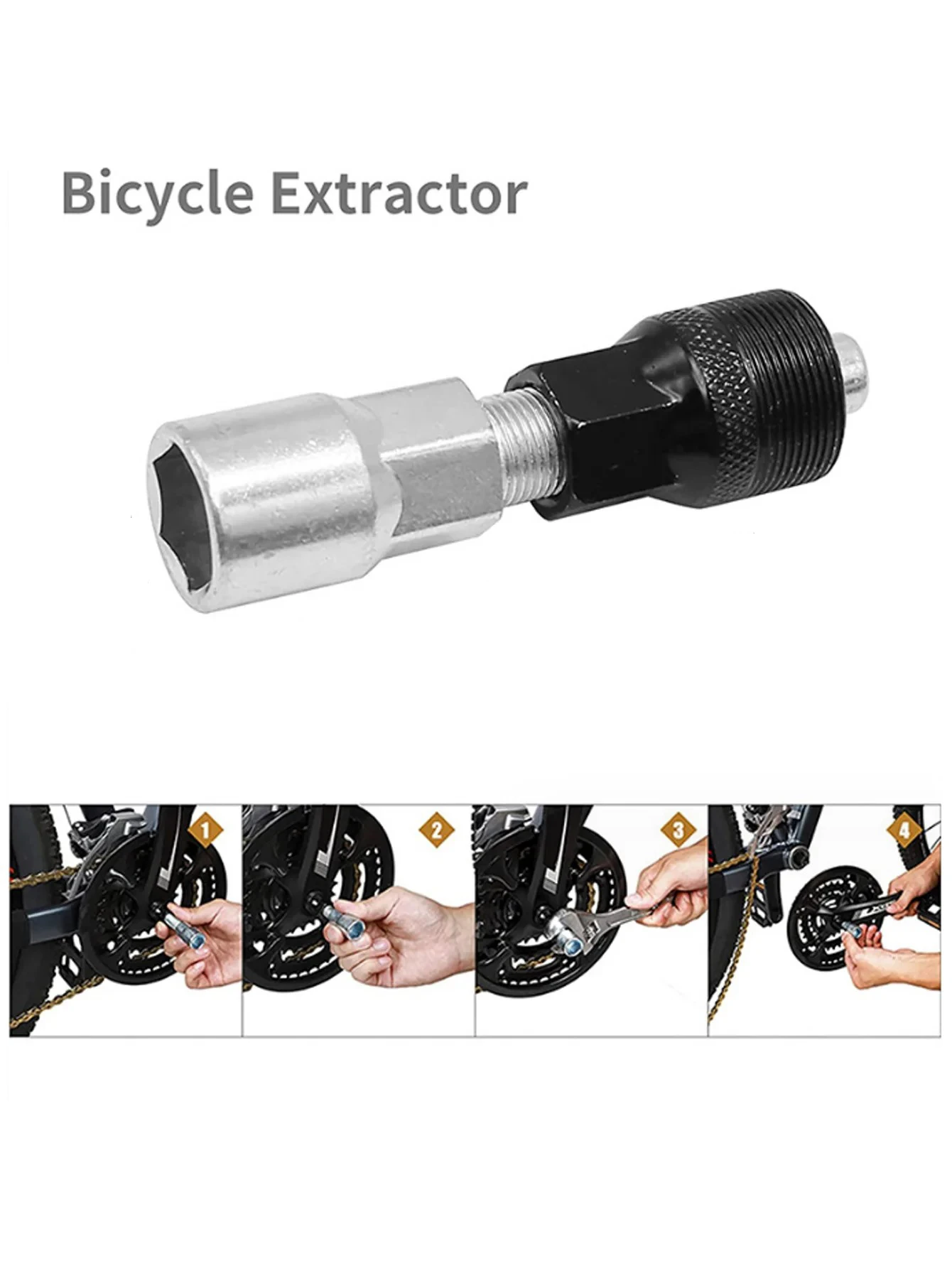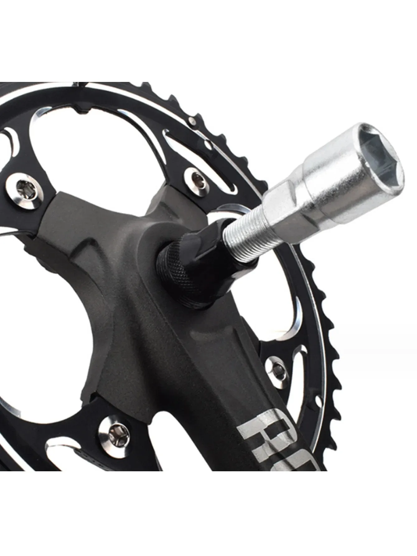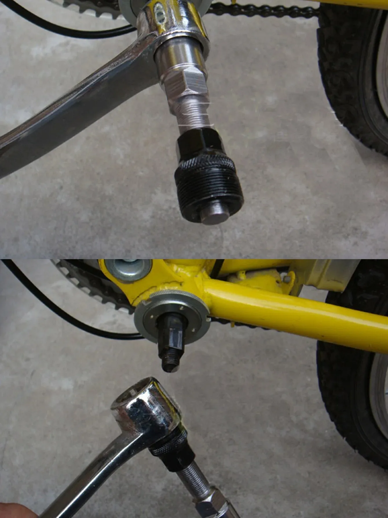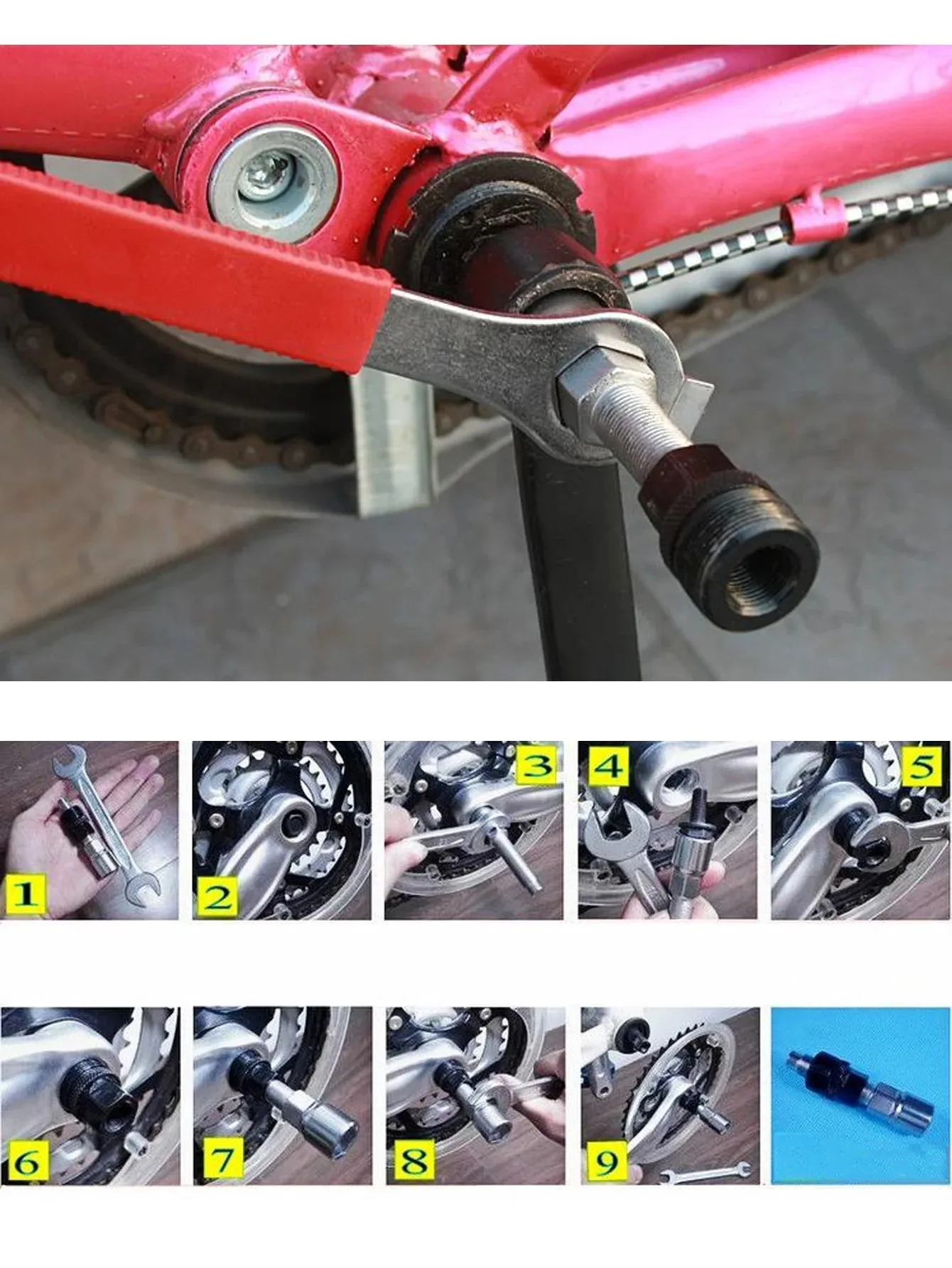 Necesita un extractor de manivela de bicicleta, una herramienta de reparación y desmontaje del extractor de manivela de bicicleta, una llave de 5/8 de pulgada o 16 mm o solo una llave ajustable.