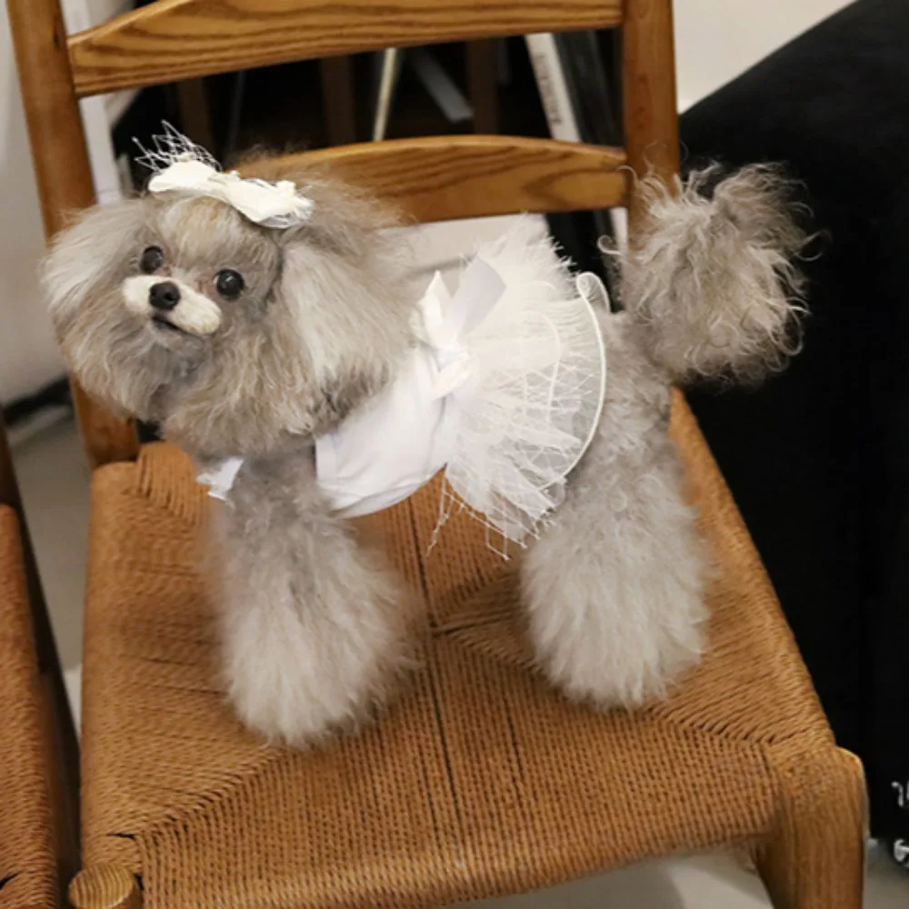 Falda abombada de malla de encaje para mascotas, falda con tirantes de encaje de princesa con lazo para gato, ropa para cachorros, vestidos para perros pequeños