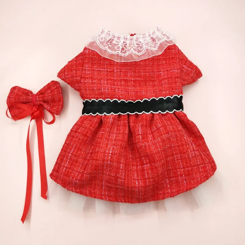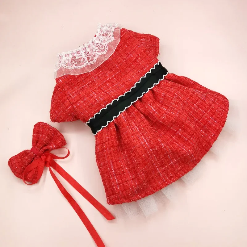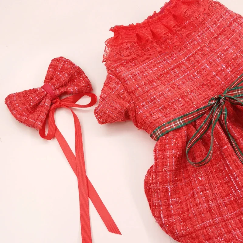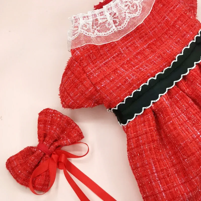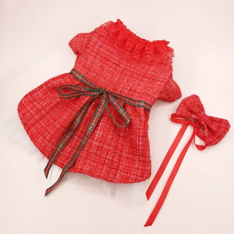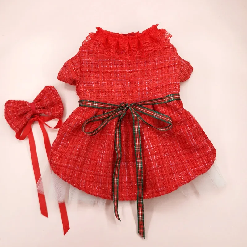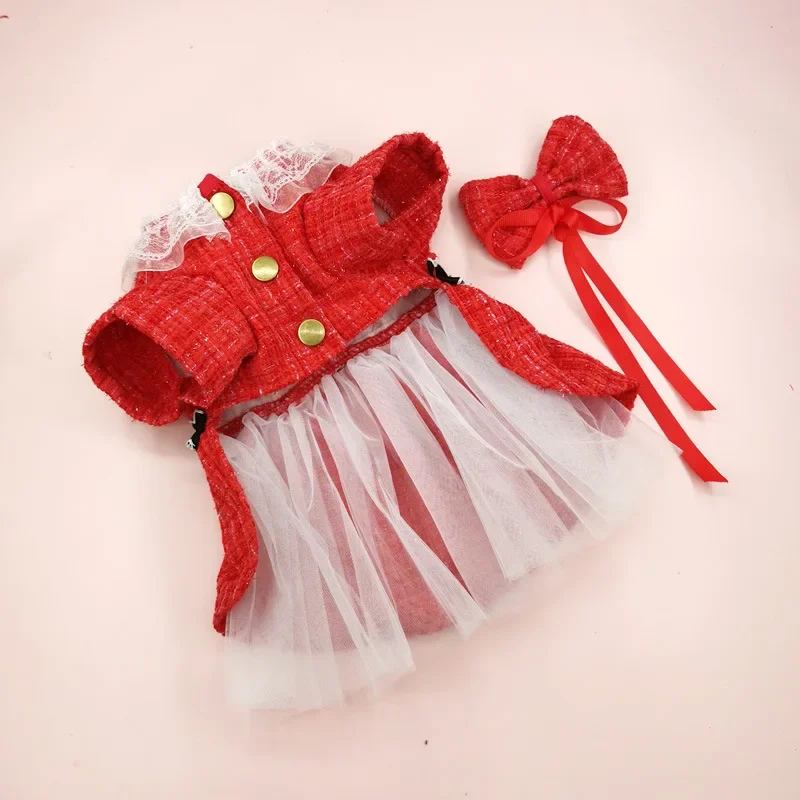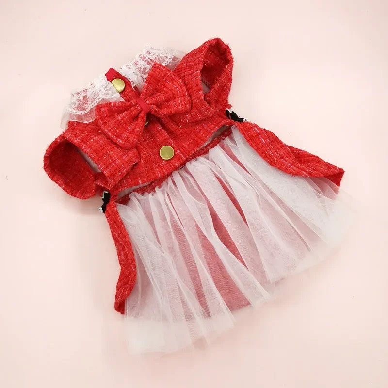 Falda de abrigo para mascotas, ropa para mascotas, vestido rojo de Navidad, falda de gasa de doble capa, cortavientos, pajarita para gatos, ropa para perros de diseñador