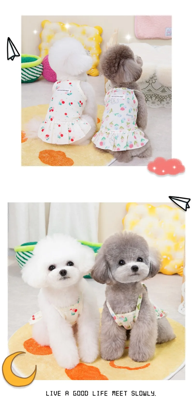 Falda de algodón INS cereza para cachorros, ropa para perros pequeños, vestidos de Pomerania, falda con tirantes florales de verano, ropa para cachorros