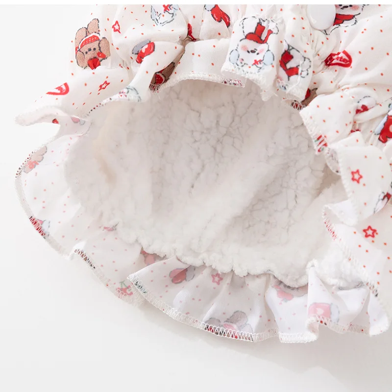 Falda de calabaza de invierno para cachorros, chaqueta cálida de invierno para perros, abrigo de algodón con forro polar estilo princesa con lazo de peluche