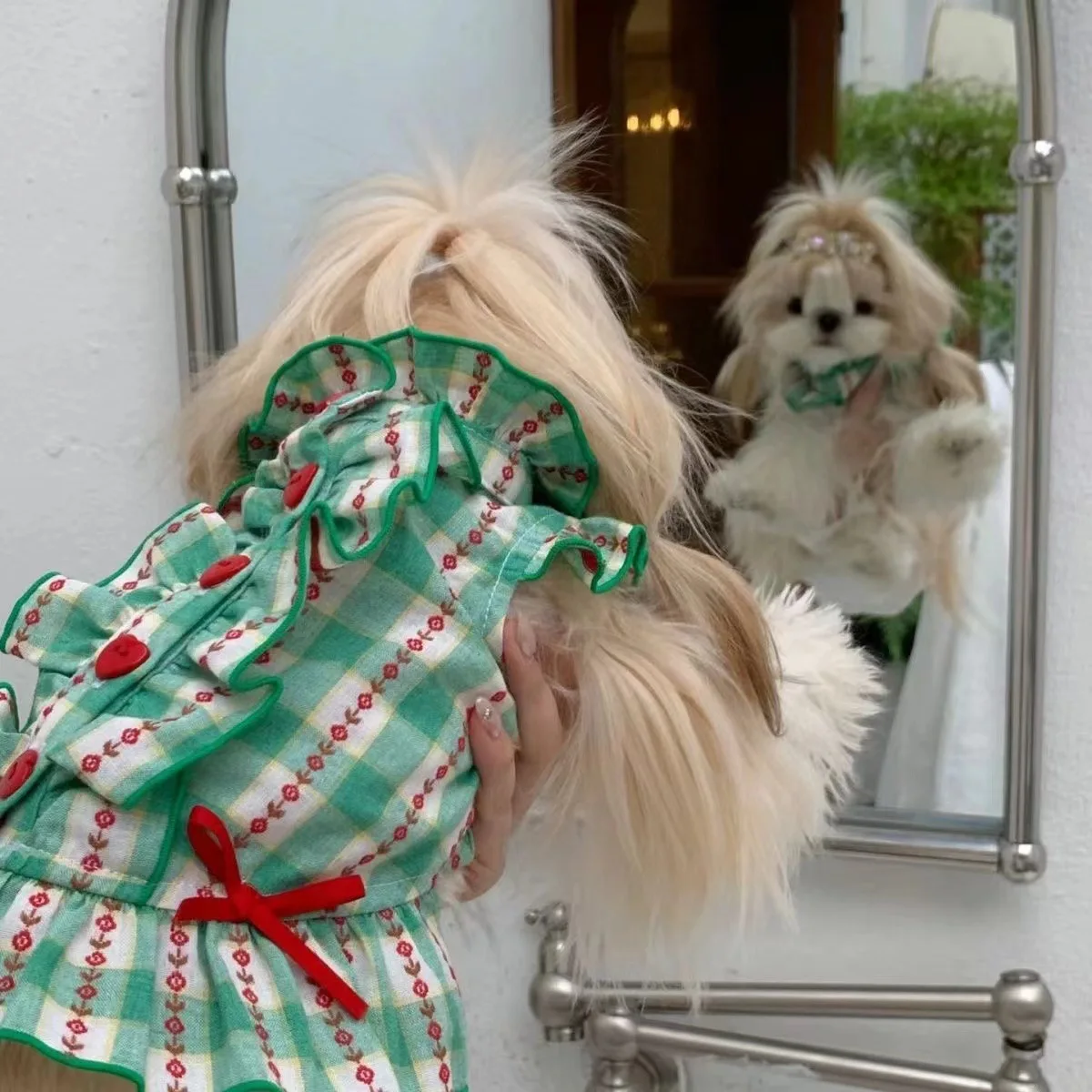 Falda de camisa a cuadros estilo INS para mascotas, vestido de princesa, chaleco para perros, corbata de amor, ropa para mascotas, suministros de disfraces, falda