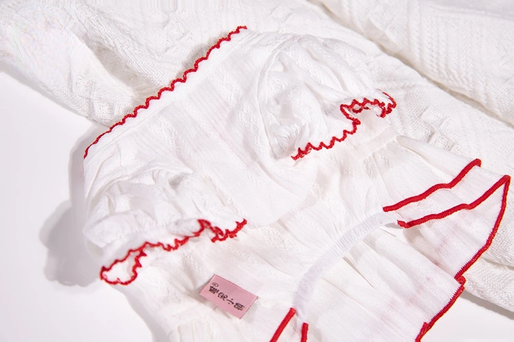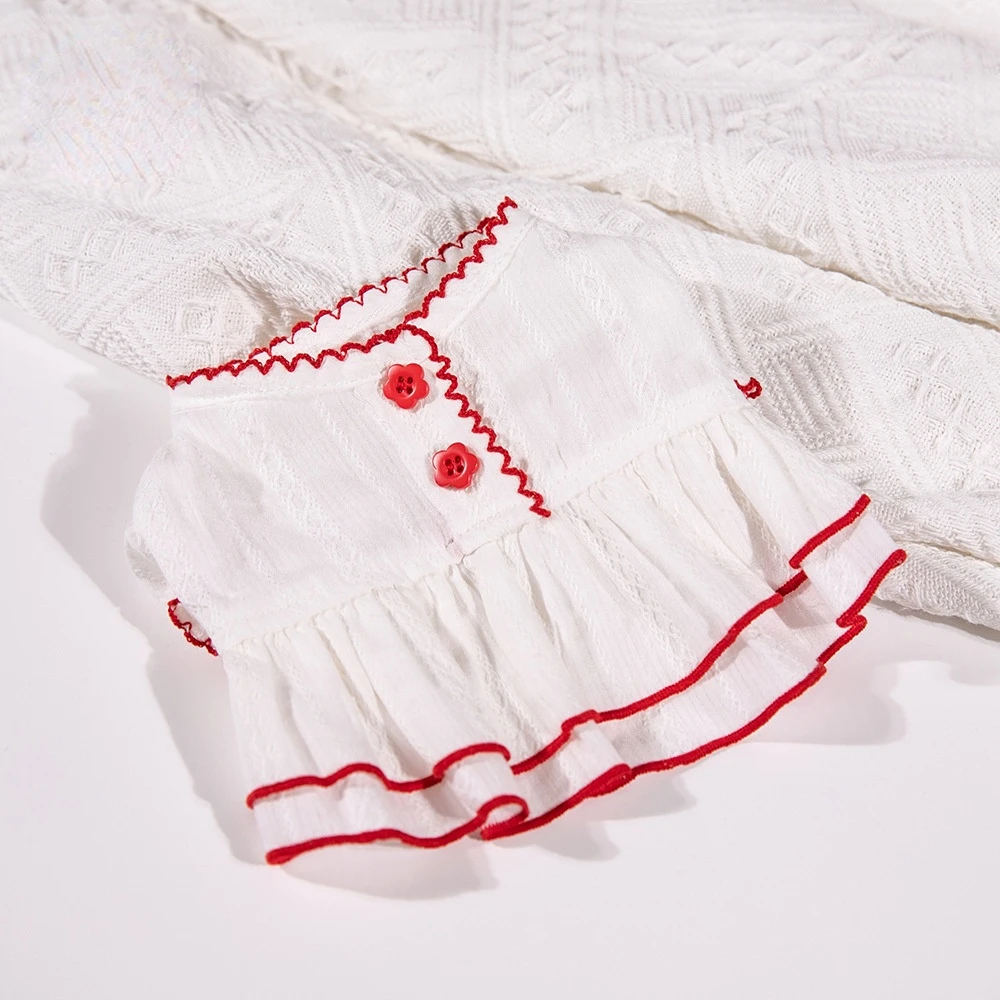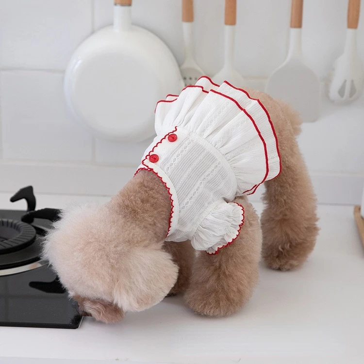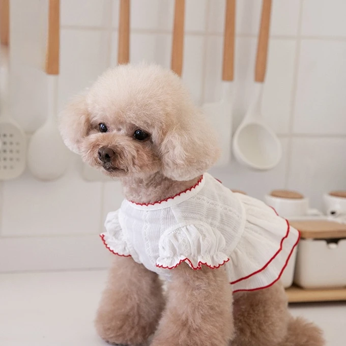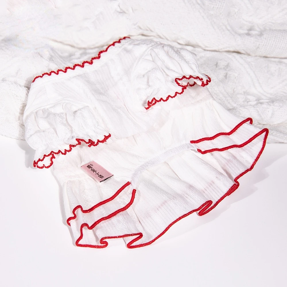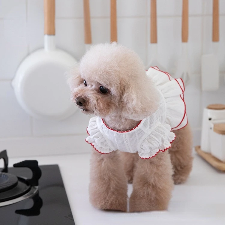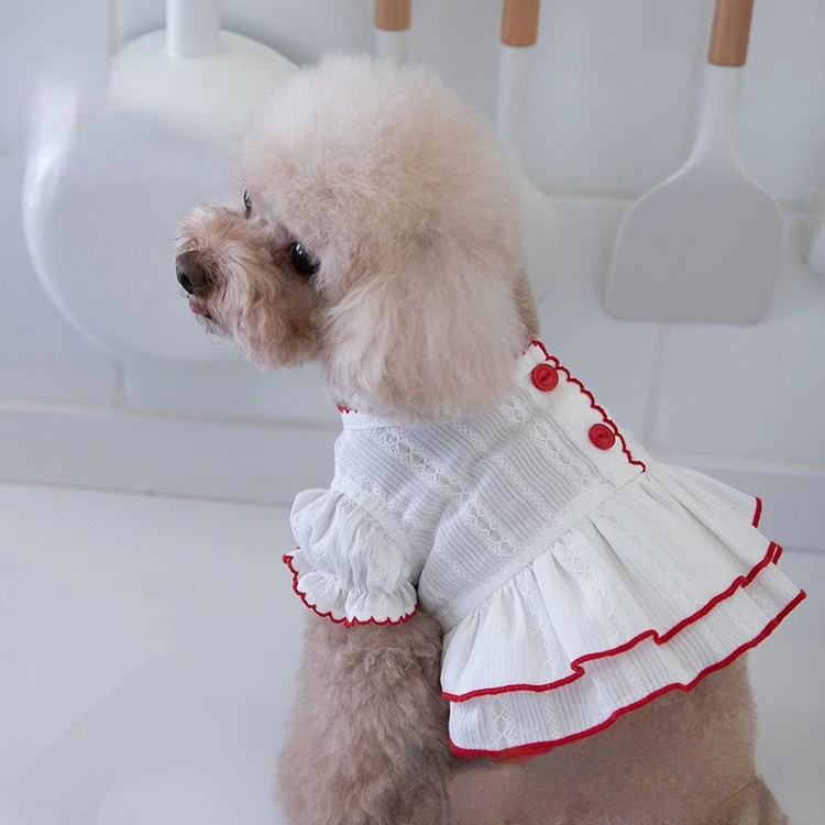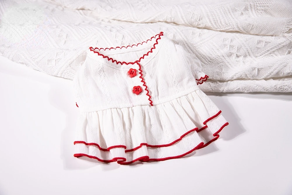 Falda corta de algodón blanco con borde de brotes de Jacquard, ropa para mascotas, ropa para gatos y perros, oso de peluche, refrescante, primavera