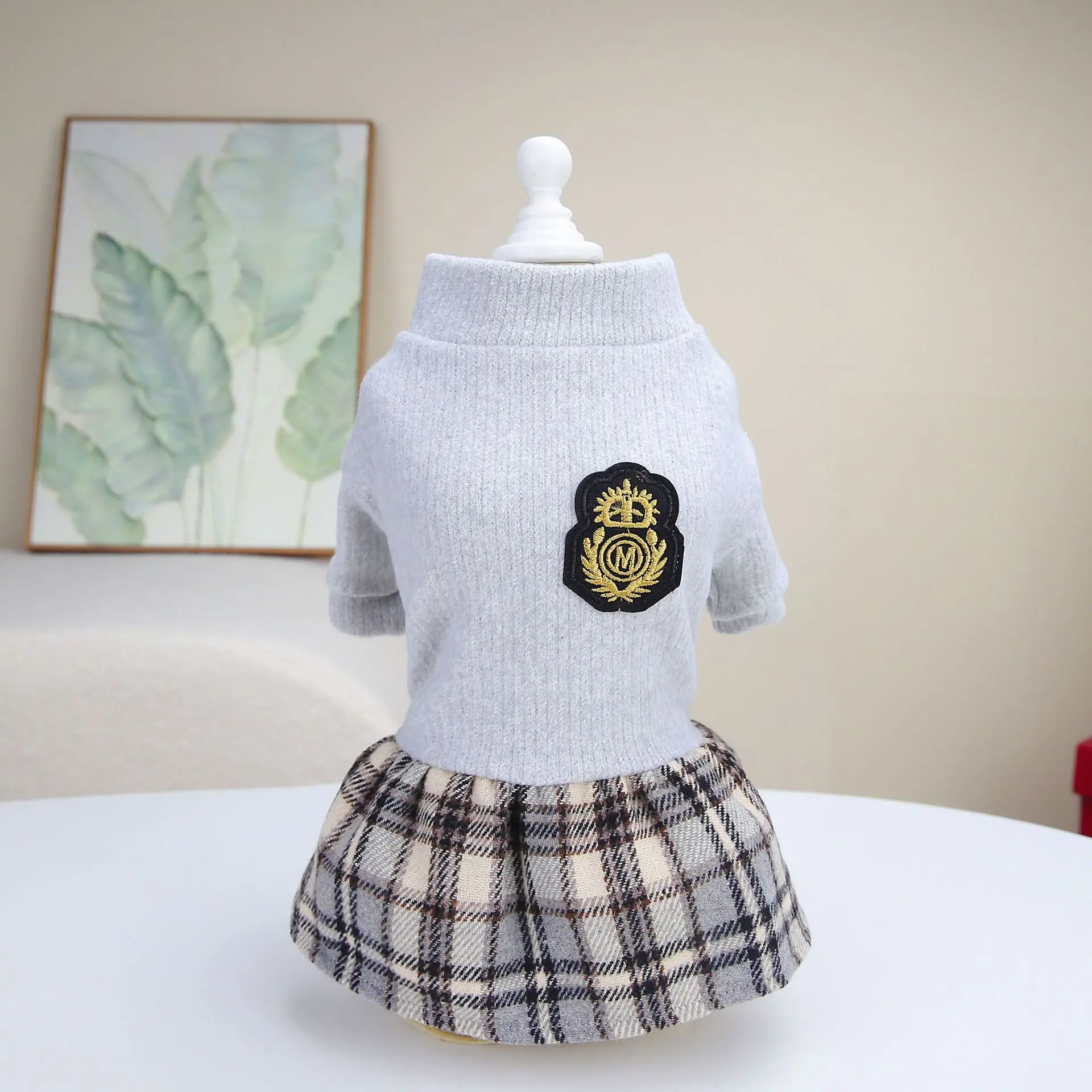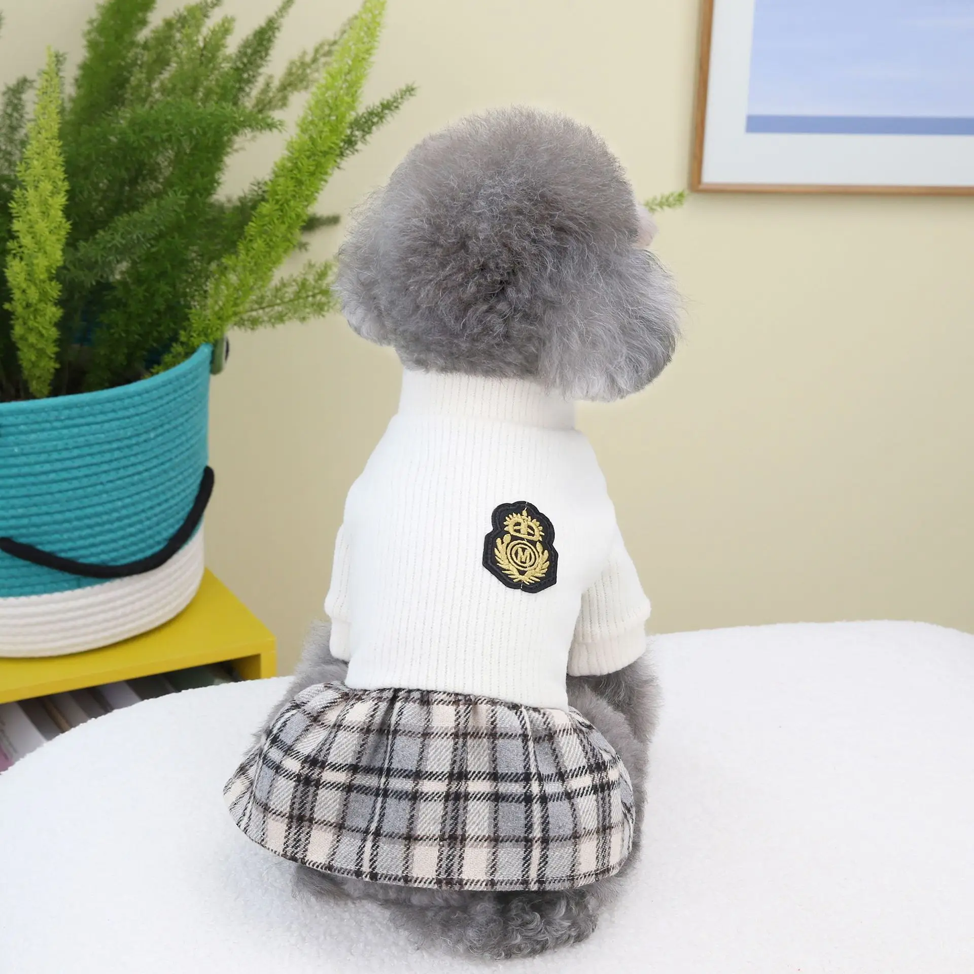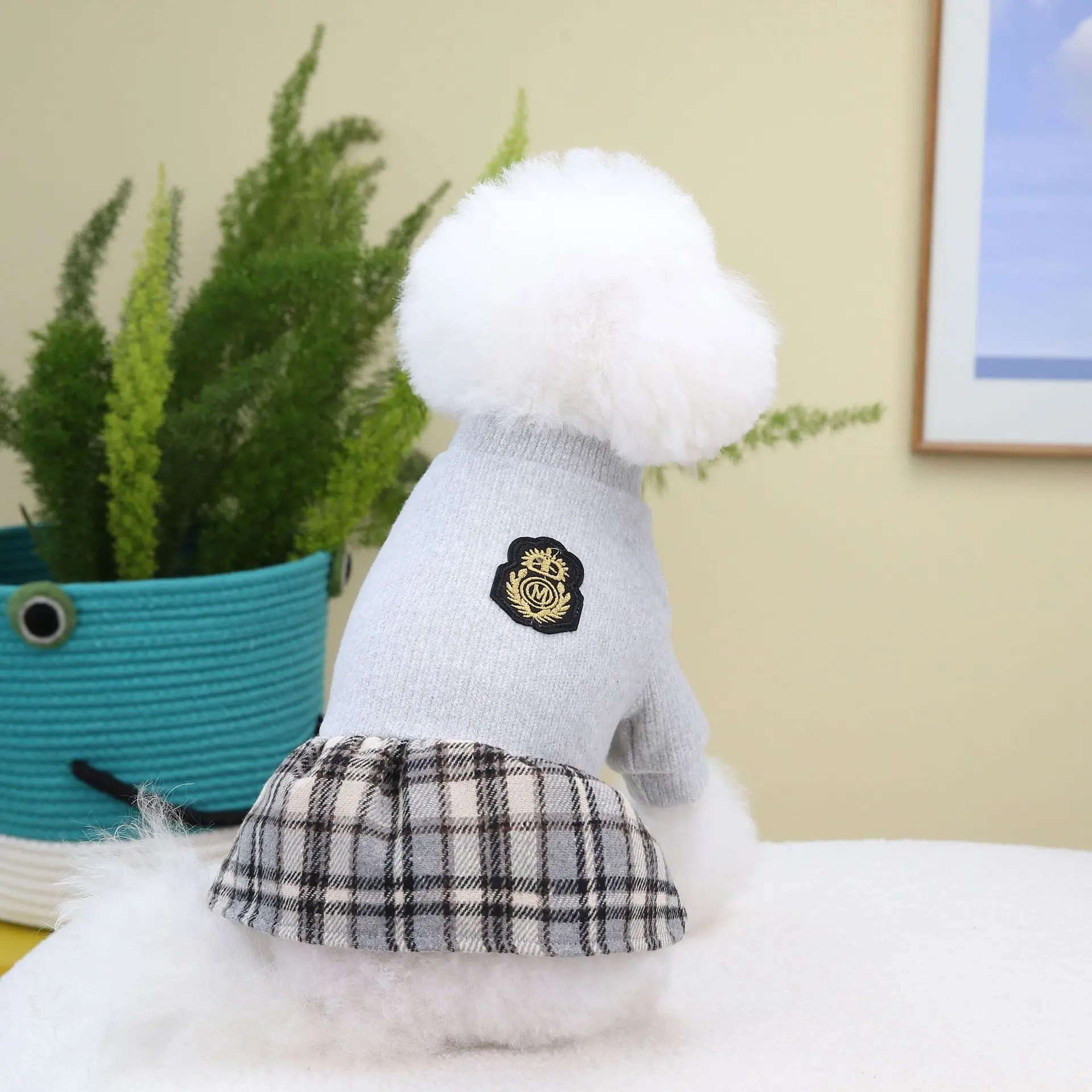 Falda corta a cuadros con empalme superior de punto para mascotas, suéteres de otoño e invierno, ropa para perros, gatos, falda a cuadros de invierno - imagen 4