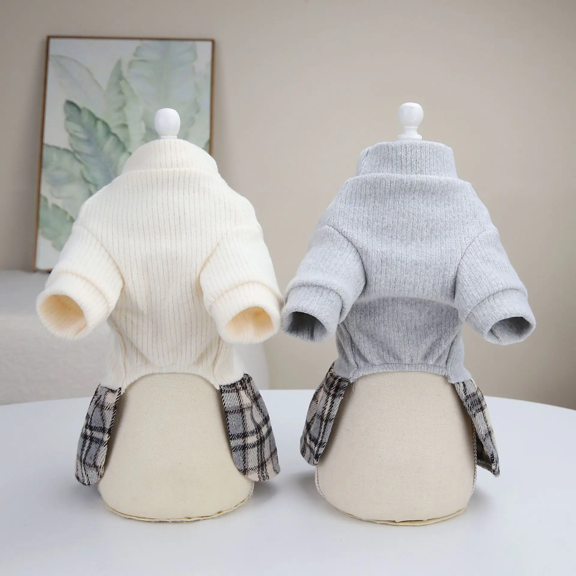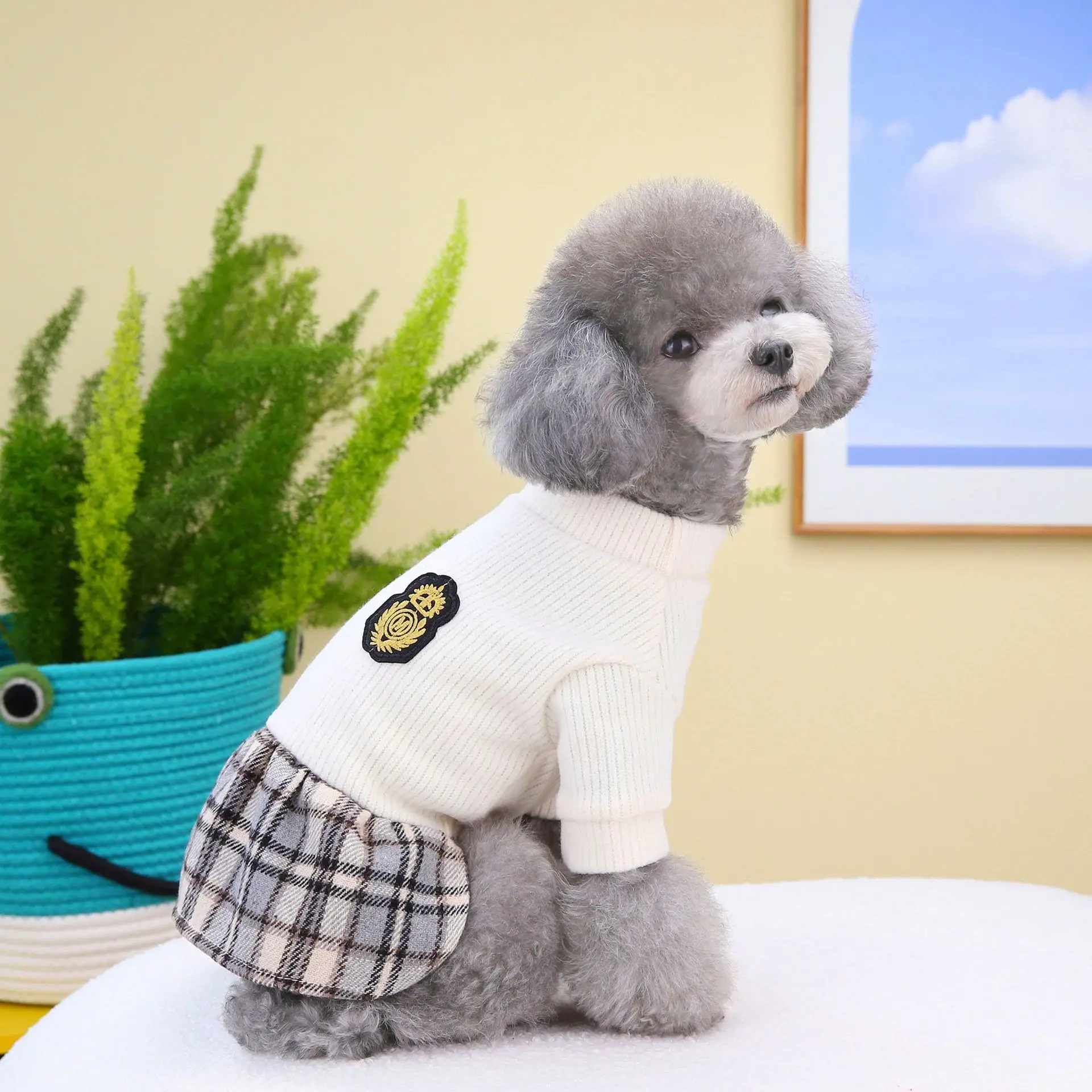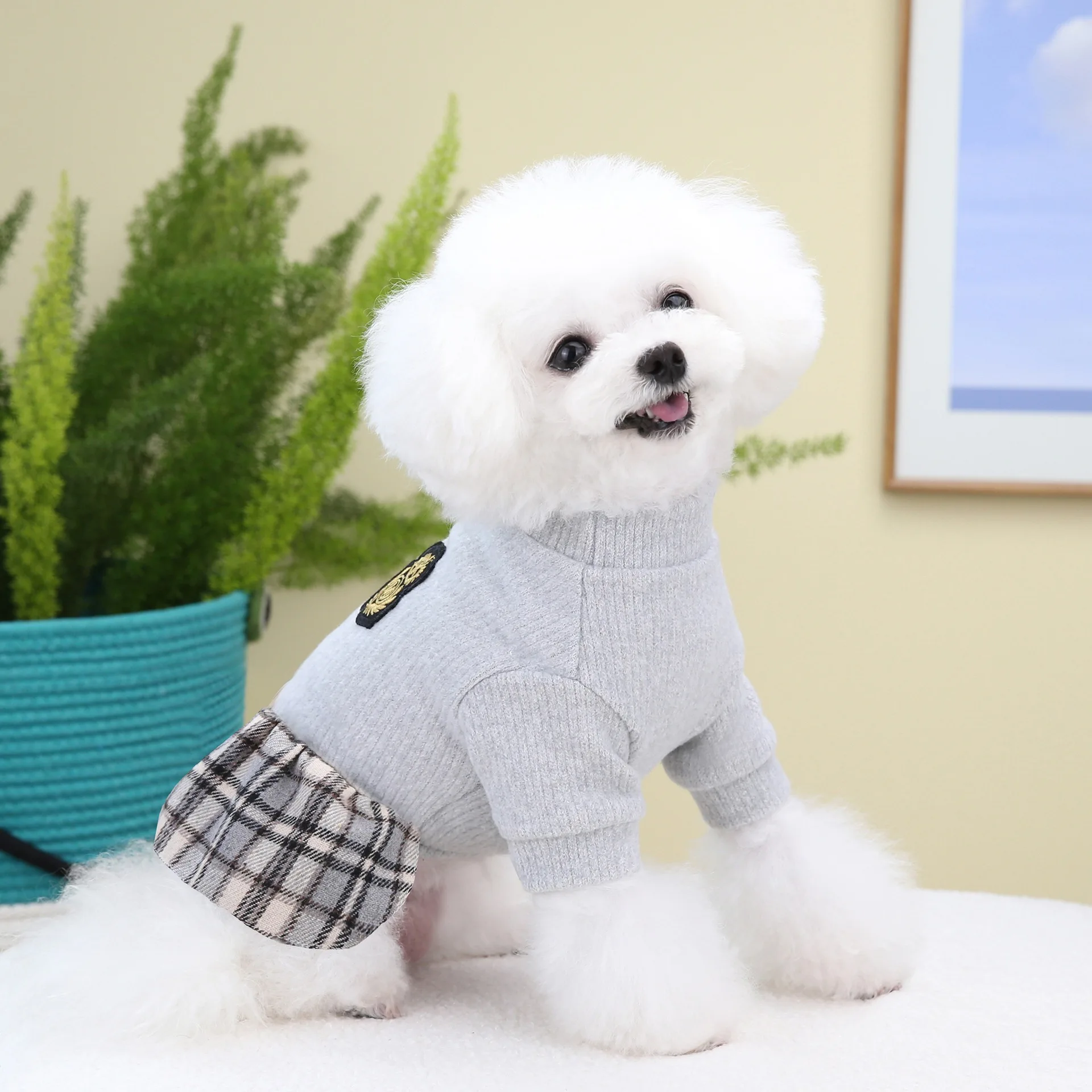 Falda corta a cuadros con empalme superior de punto para mascotas, suéteres de otoño e invierno, ropa para perros, gatos, falda a cuadros de invierno - imagen 4