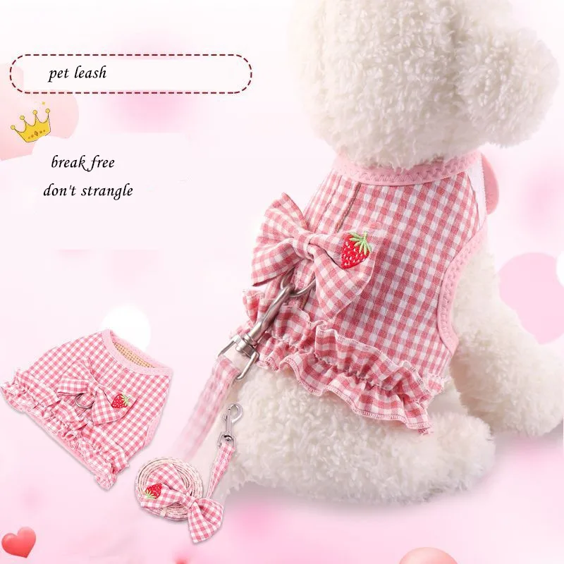 Falda con cuello de perro con lazo, bonito arnés para mascotas con correa para el pecho, cuerda de tracción, ropa para perros y gatos, chaleco con arnés, falda de vestido tutú de princesa