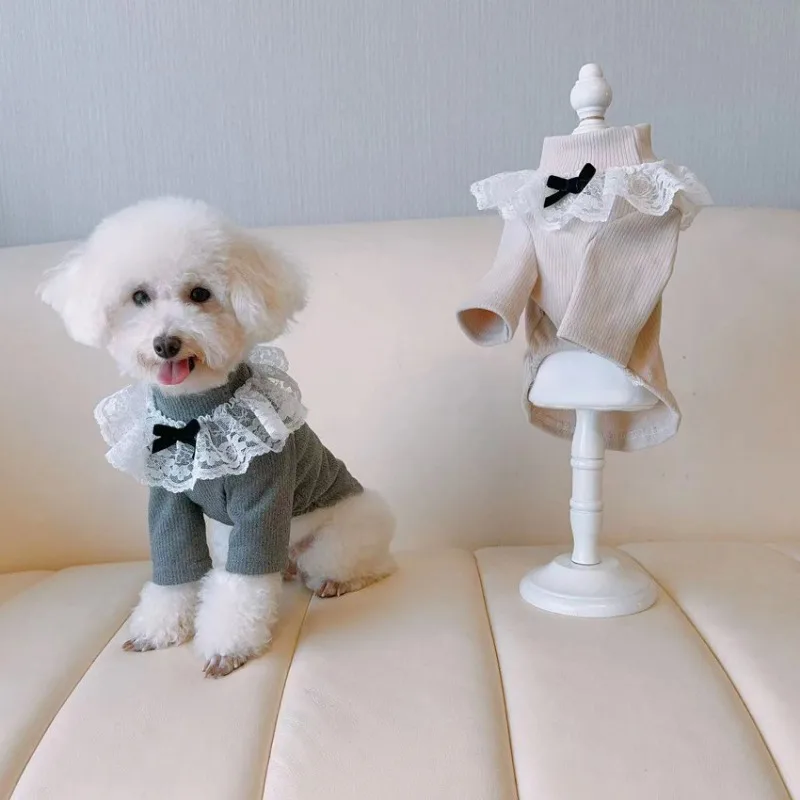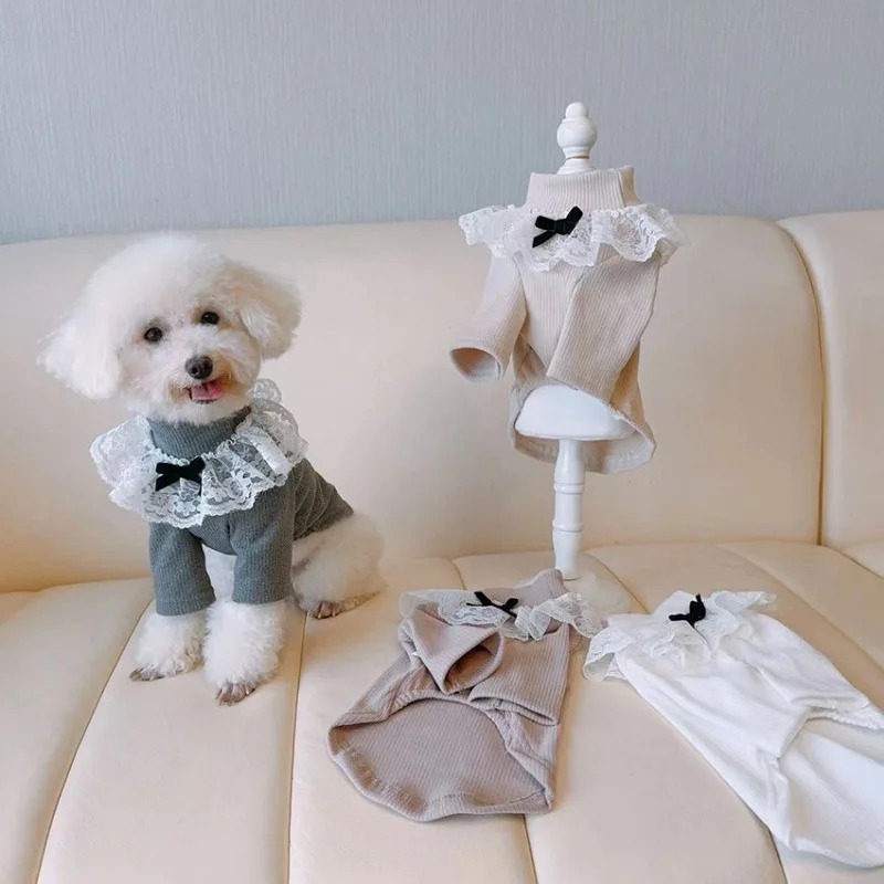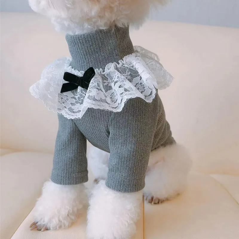Falda de encaje para cachorros, abrigo Base de cuello alto para invierno para perros pequeños, ropa de dos patas para mascotas, ropa de oso de peluche para perros pequeños, abrigo Base cálido