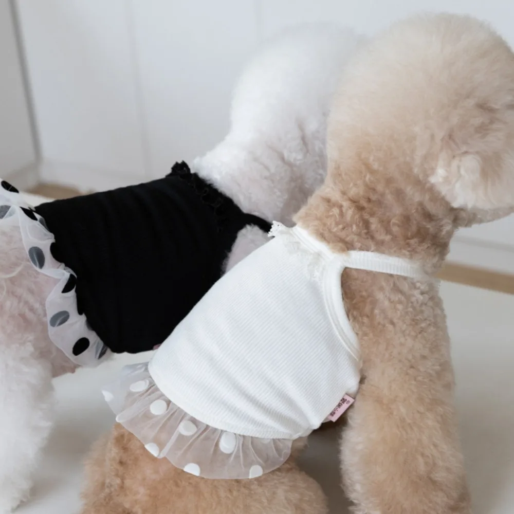 Falda esponjosa de malla de primavera para mascotas, camisola cómoda y fresca de lunares, chaleco para mascotas, ropa para perros y gatos, perros pequeños