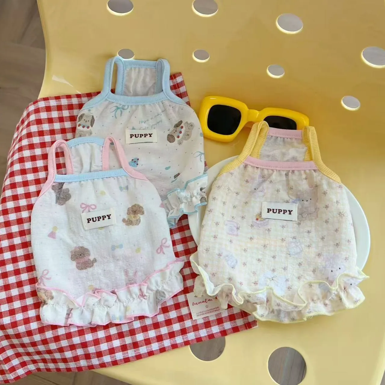 Falda Floral fina para mascotas, ropa para perros pequeños, vestidos para perros pequeños, ropa para cachorros pequeños, primavera/verano