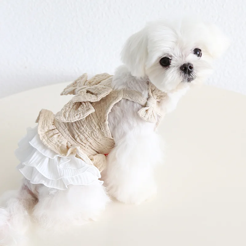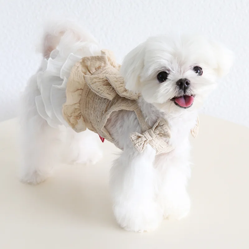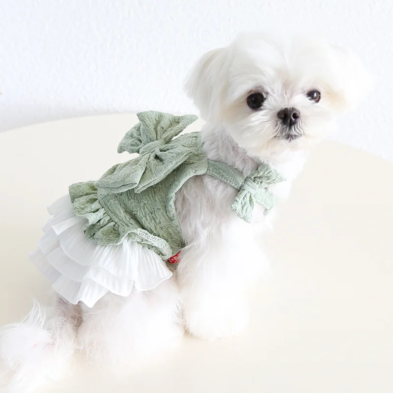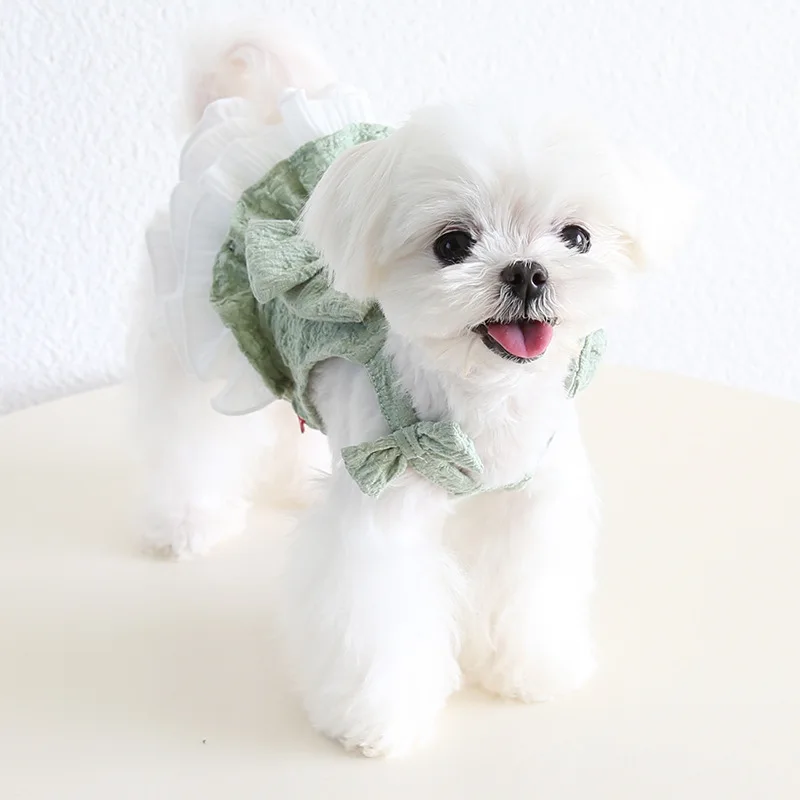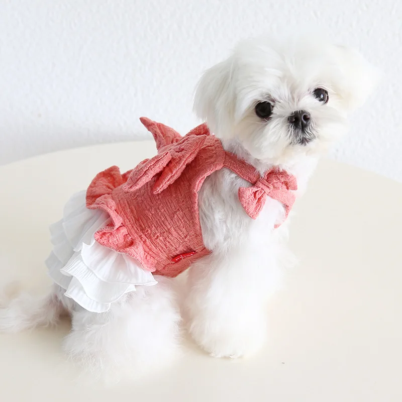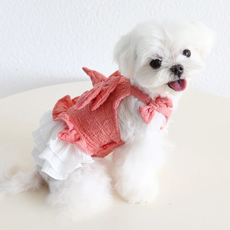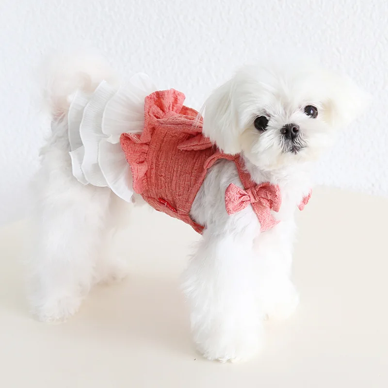 Falda de gasa con lazo de primavera para mascotas, falda para pastel de gato, camiseta sin mangas para perros, ropa para perros pequeños, ropa para cachorros para perros pequeños