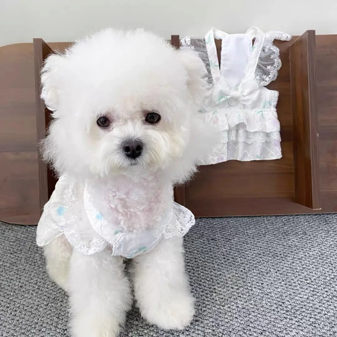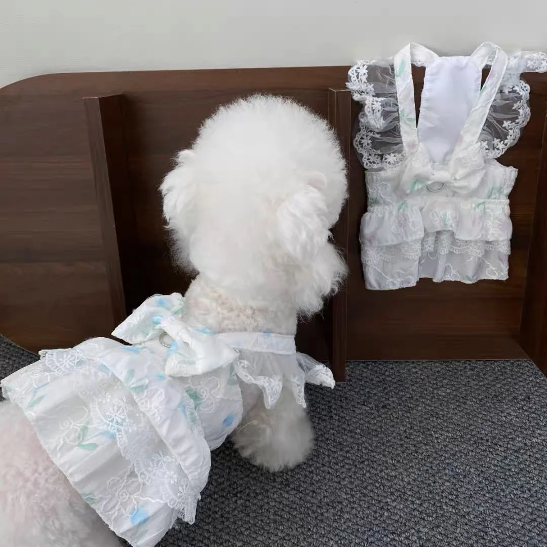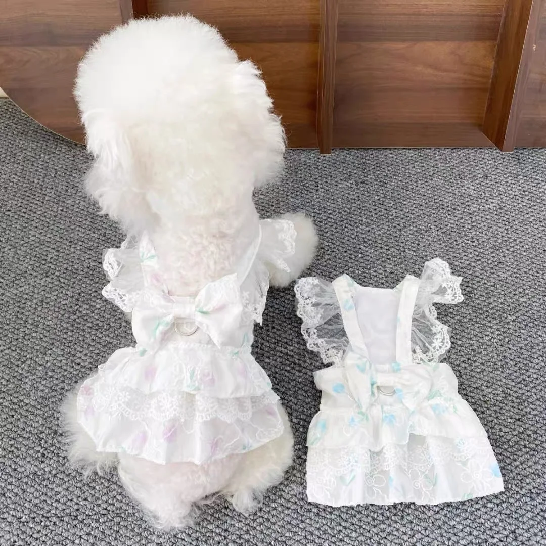 Falda con lazo para primavera/verano para mascotas, falda con pastel de manga voladora para gatos, Top con arnés para perros, ropa para perros pequeños