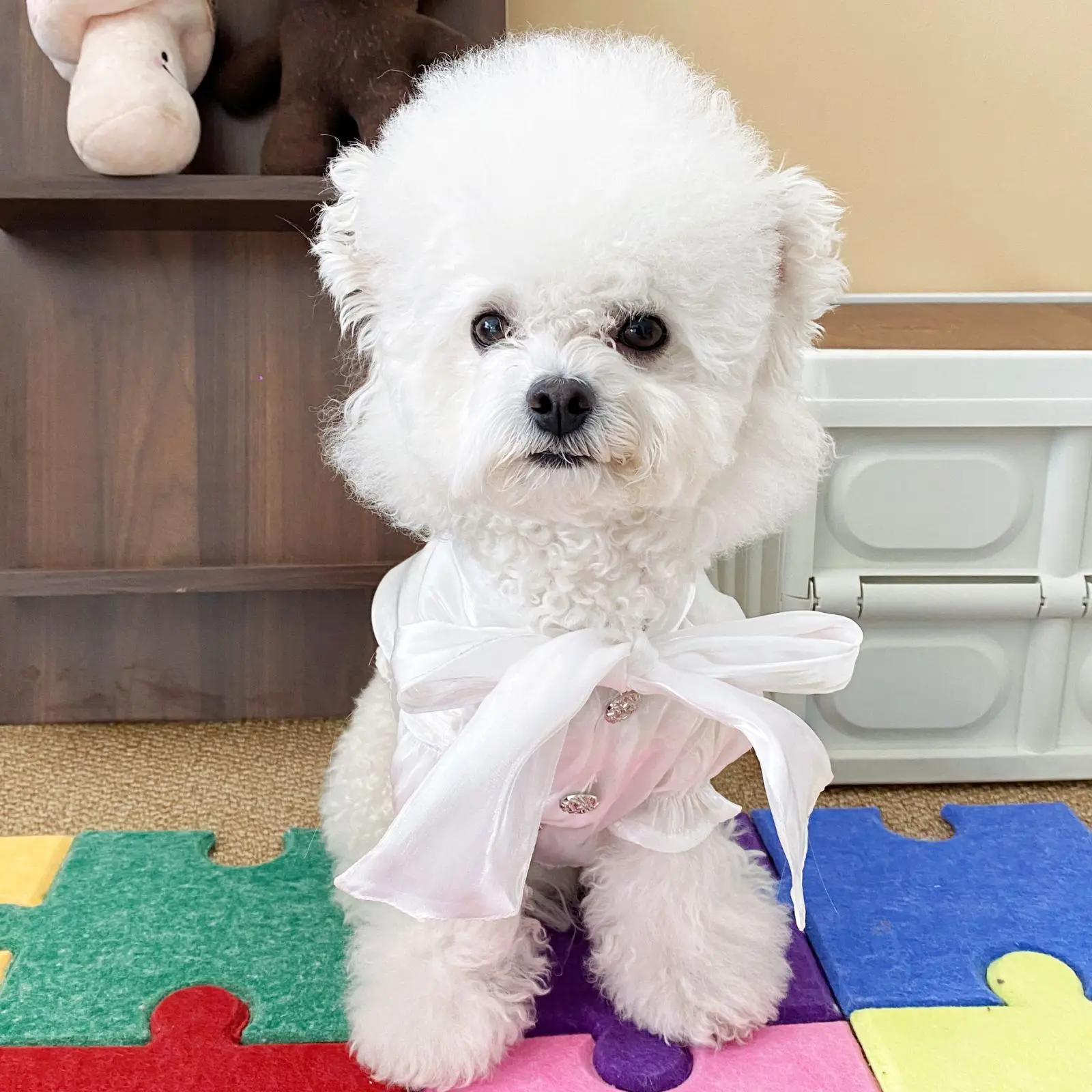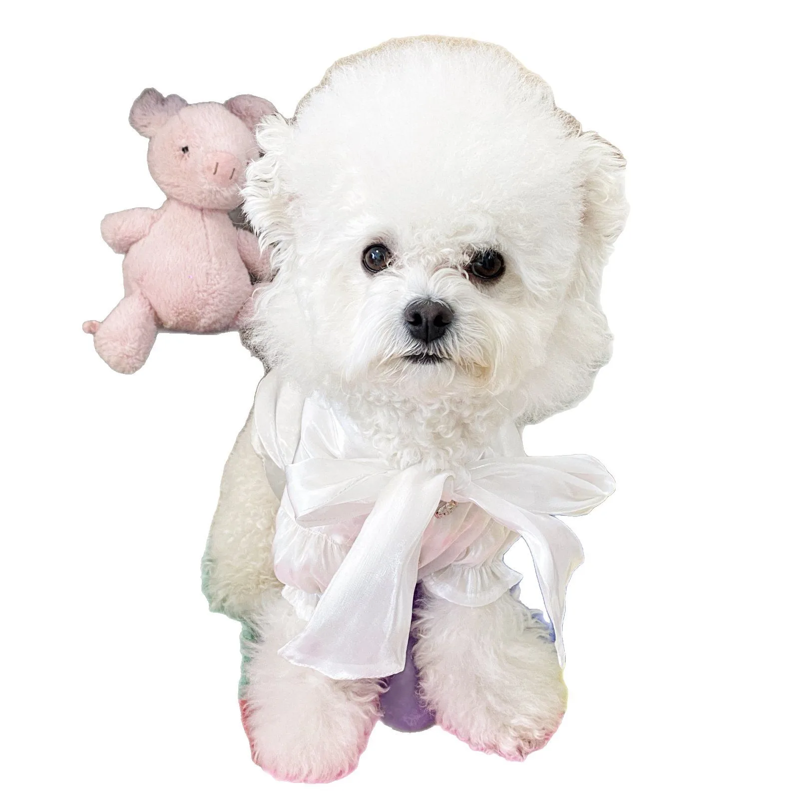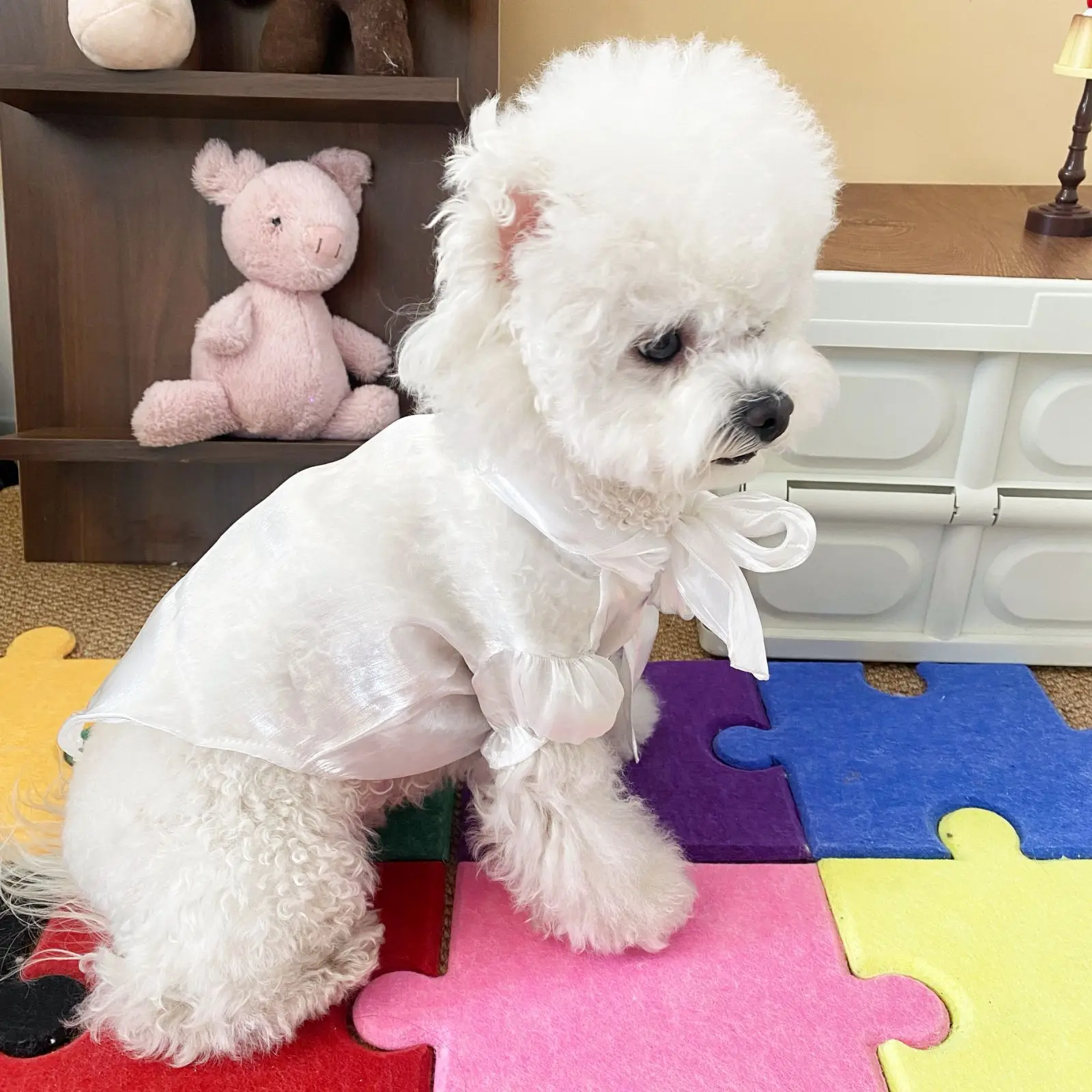 Falda de malla de primavera para mascotas, camiseta con lazo de peluche, camisa bonita para perros y gatos, vestidos para perros pequeños, ropa para cachorros