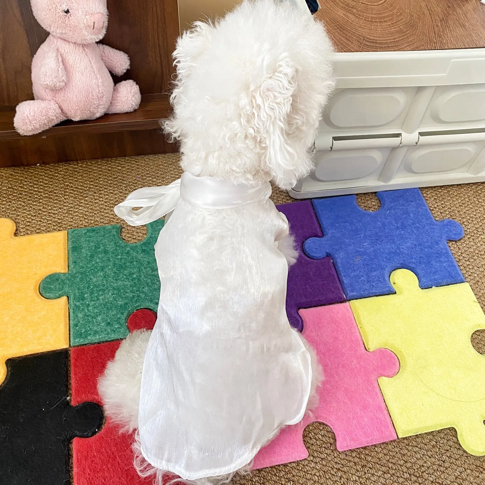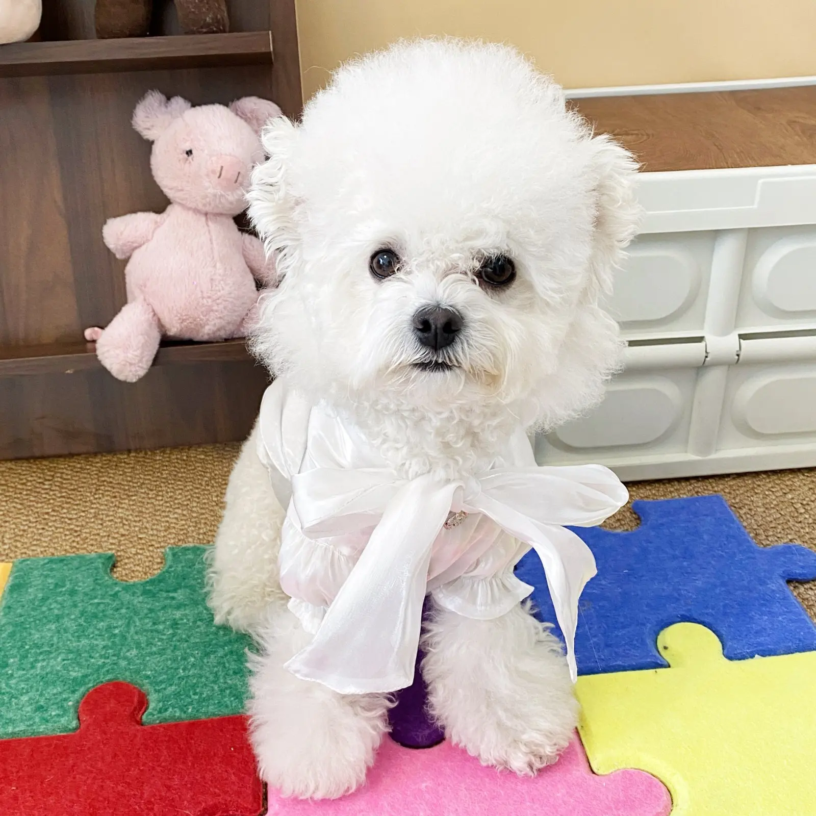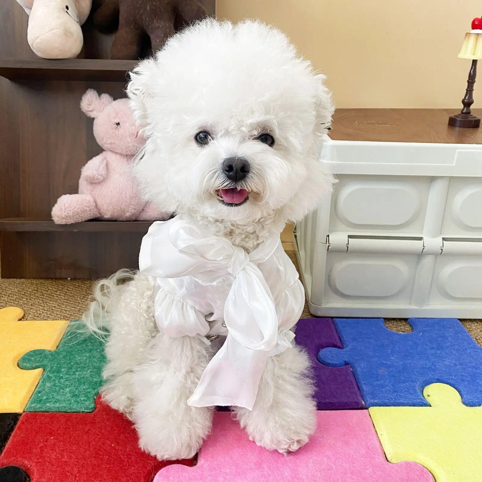 Falda de malla de primavera para mascotas, camiseta con lazo de peluche, camisa bonita para perros y gatos, vestidos para perros pequeños, ropa para cachorros