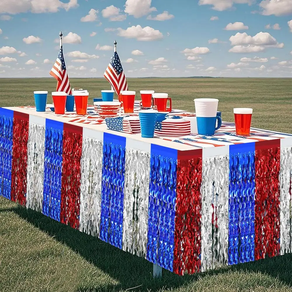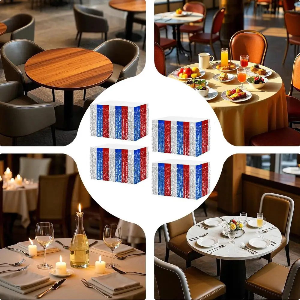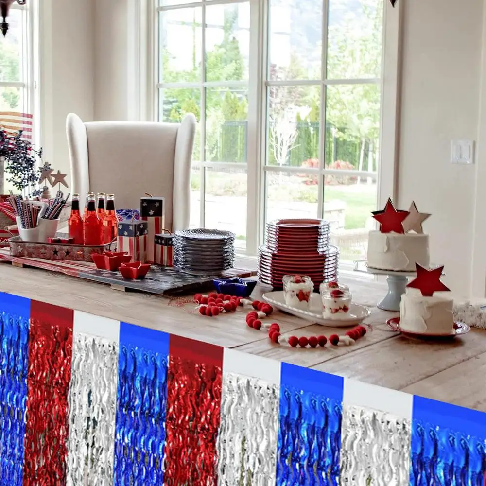 2. Resaltado brillante para la fiesta: hecho de papel de aluminio brillante, el faldón de mesa con flecos similar al metal agrega un toque de atracción a su evento, elevando el ambiente general con su atractivo brillante.