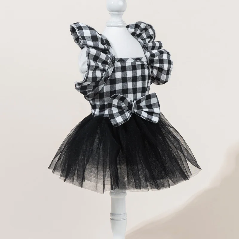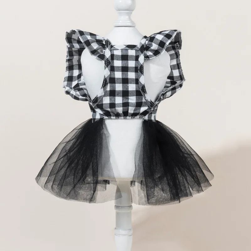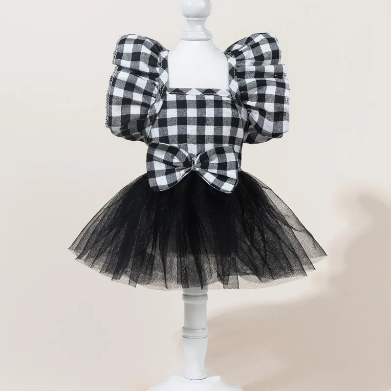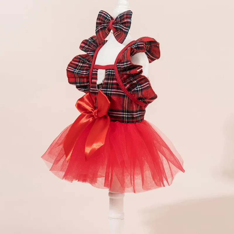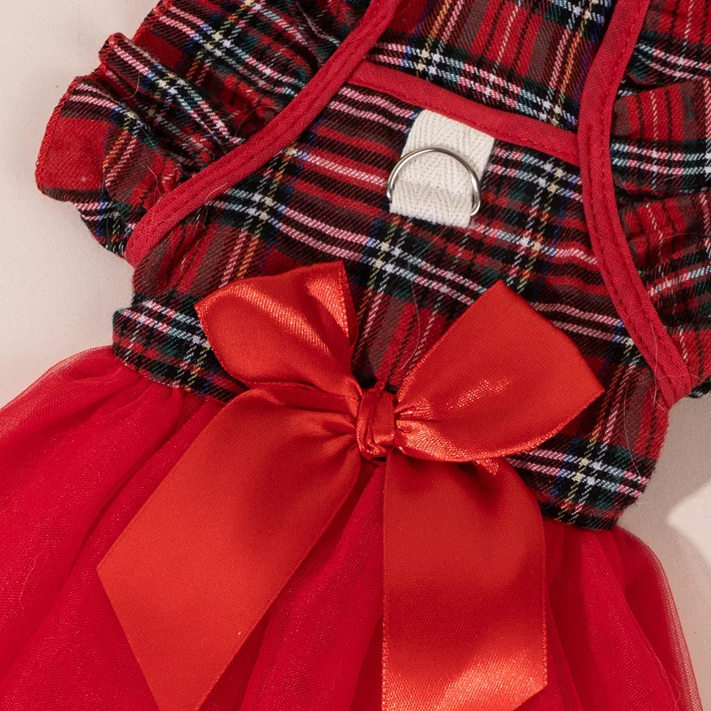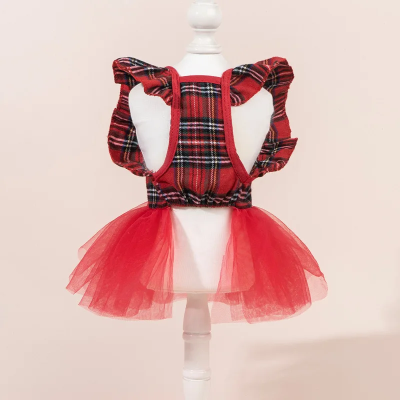Falda mullida de malla navideña para mascotas, falda a cuadros para perros, chaleco de malla de retales, vestidos para perros pequeños, otoño e invierno
