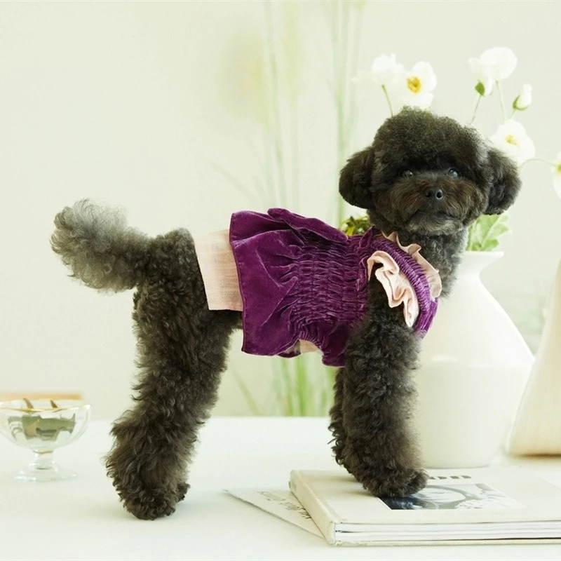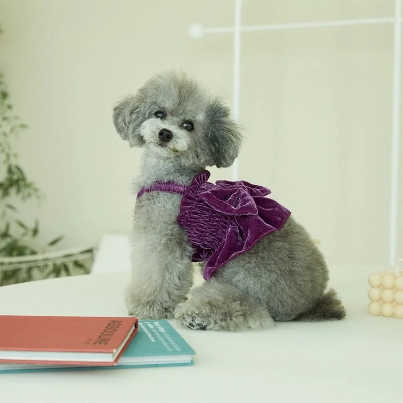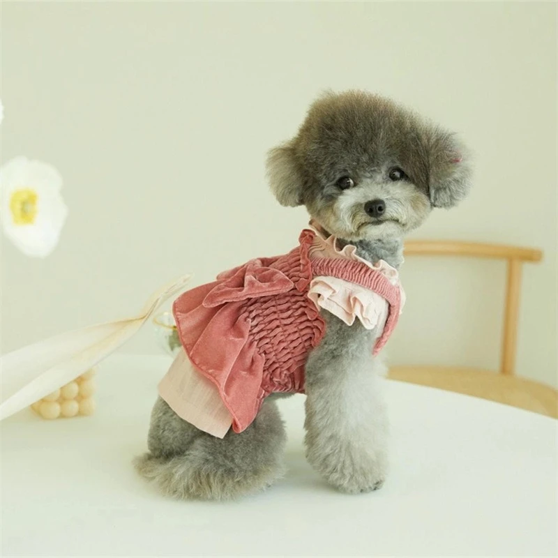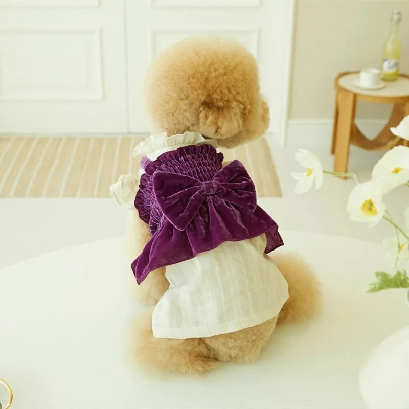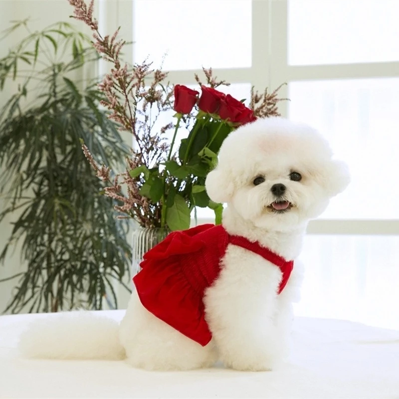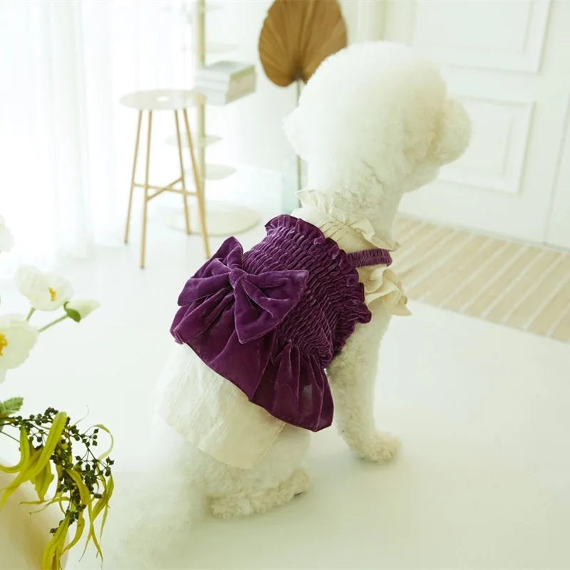Falda navideña con lazo de terciopelo para otoño/invierno para mascotas, camiseta sin mangas para gatos y mascotas, ropa para perros pequeños, ropa para cachorros