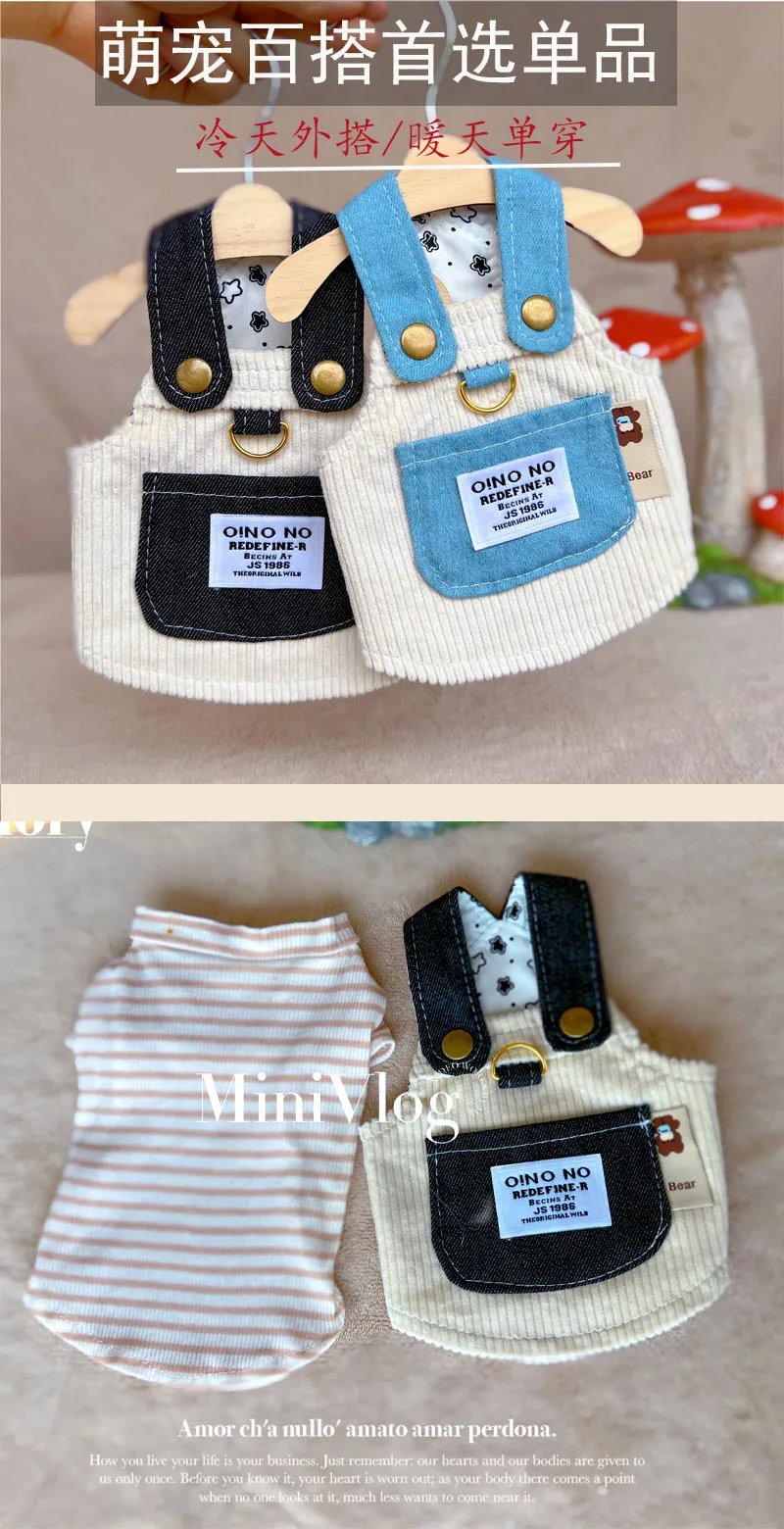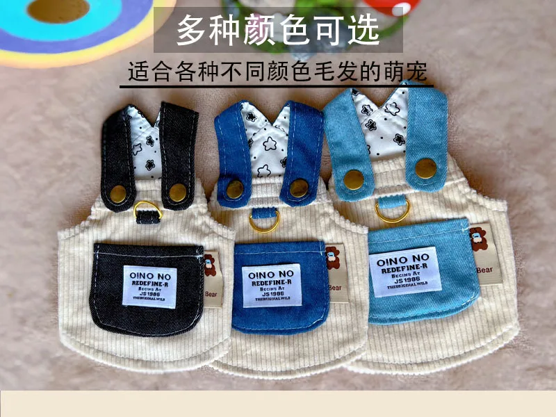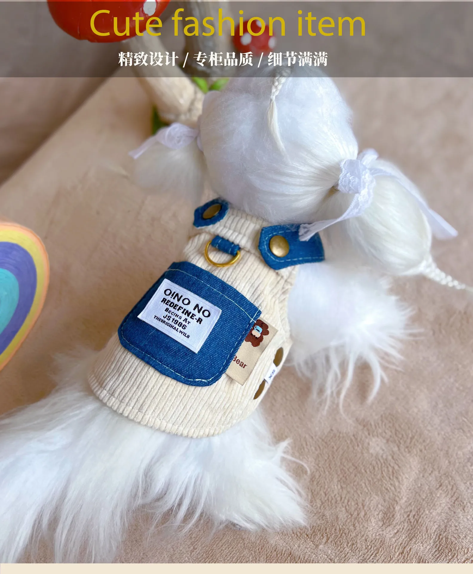 Falda de pana versátil para mascotas, ropa de bolsillo de vaquero para perros, oso de peluche, gato, Otoño e Invierno