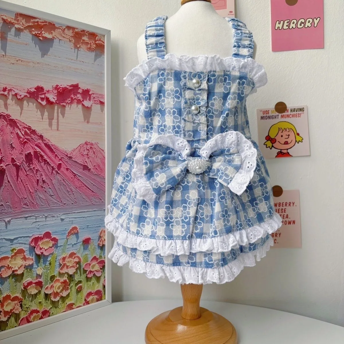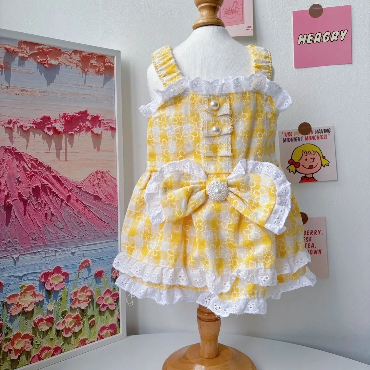 Falda de pastel de flores para primavera/verano para mascotas, vestido bonito con lazo de encaje para perros y gatos, camiseta sin mangas de peluche Yorkshire, ropa para cachorros pequeños