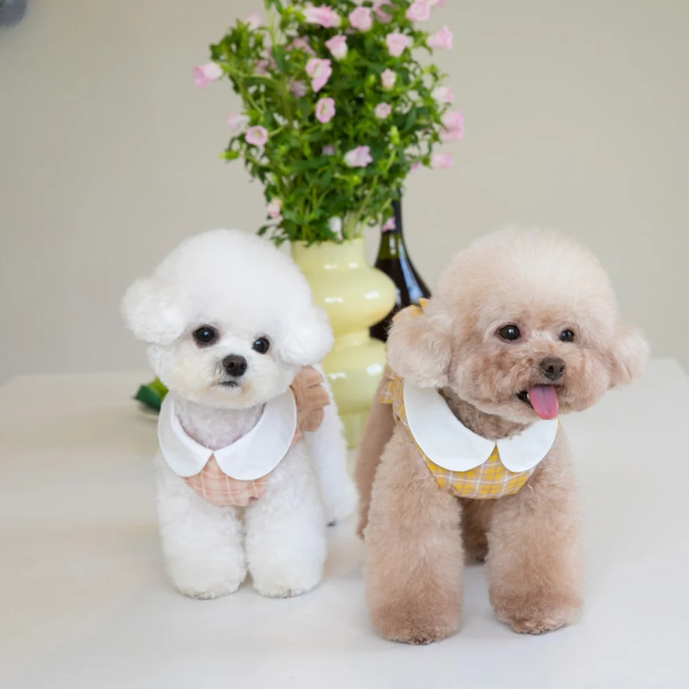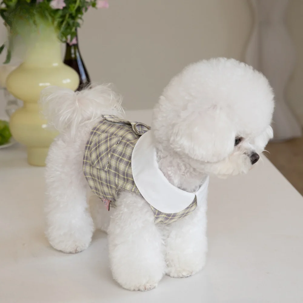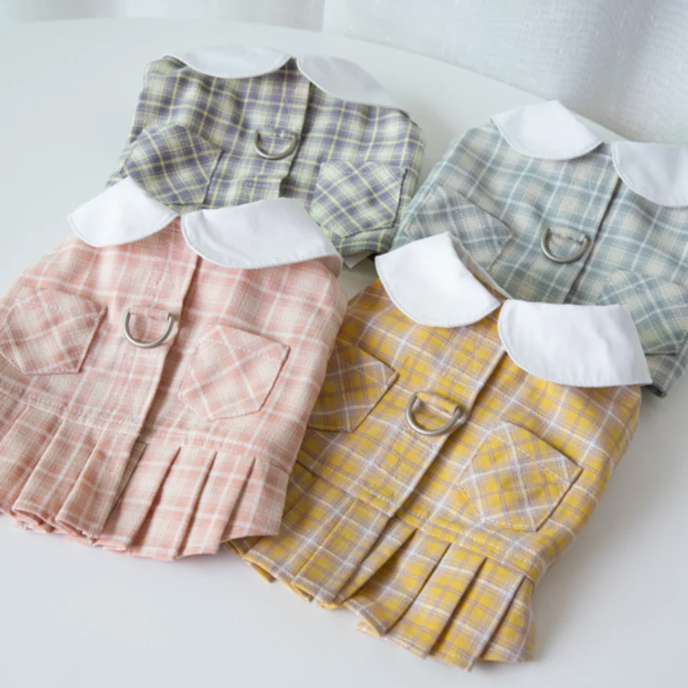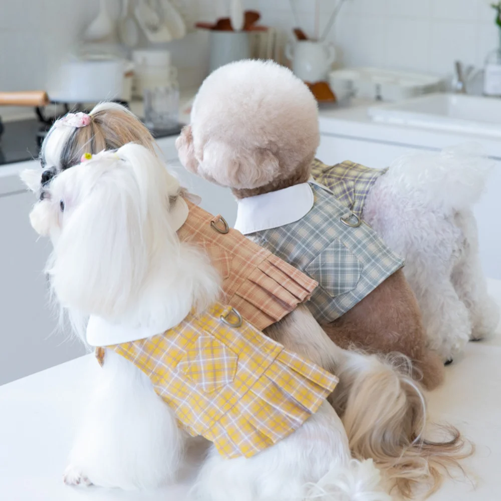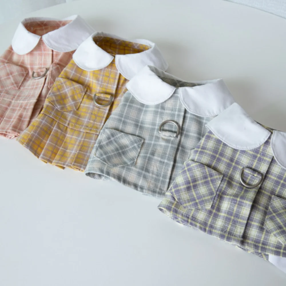 Falda para perro con correa para el pecho a cuadros de primavera, Falda corta de peluche Bichon con lazo de tulipán, conjunto de arnés y correa para perro, accesorios para perros