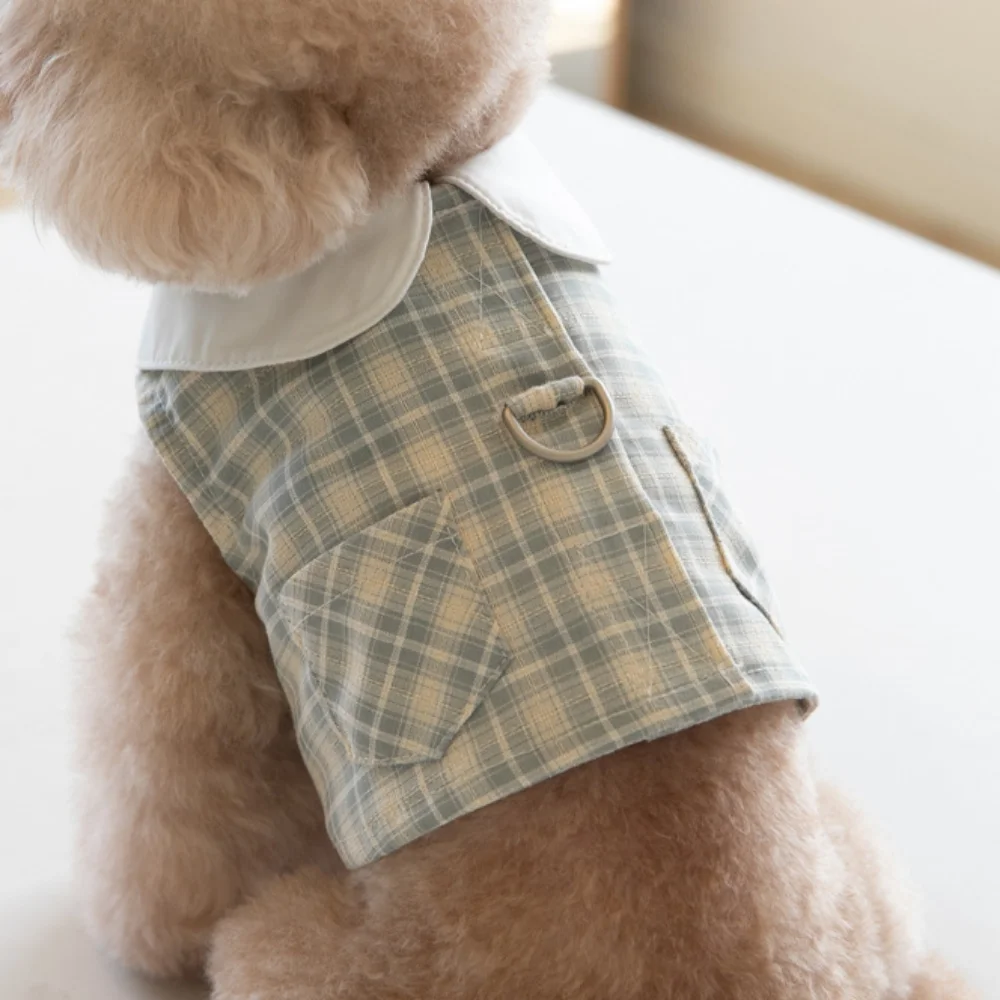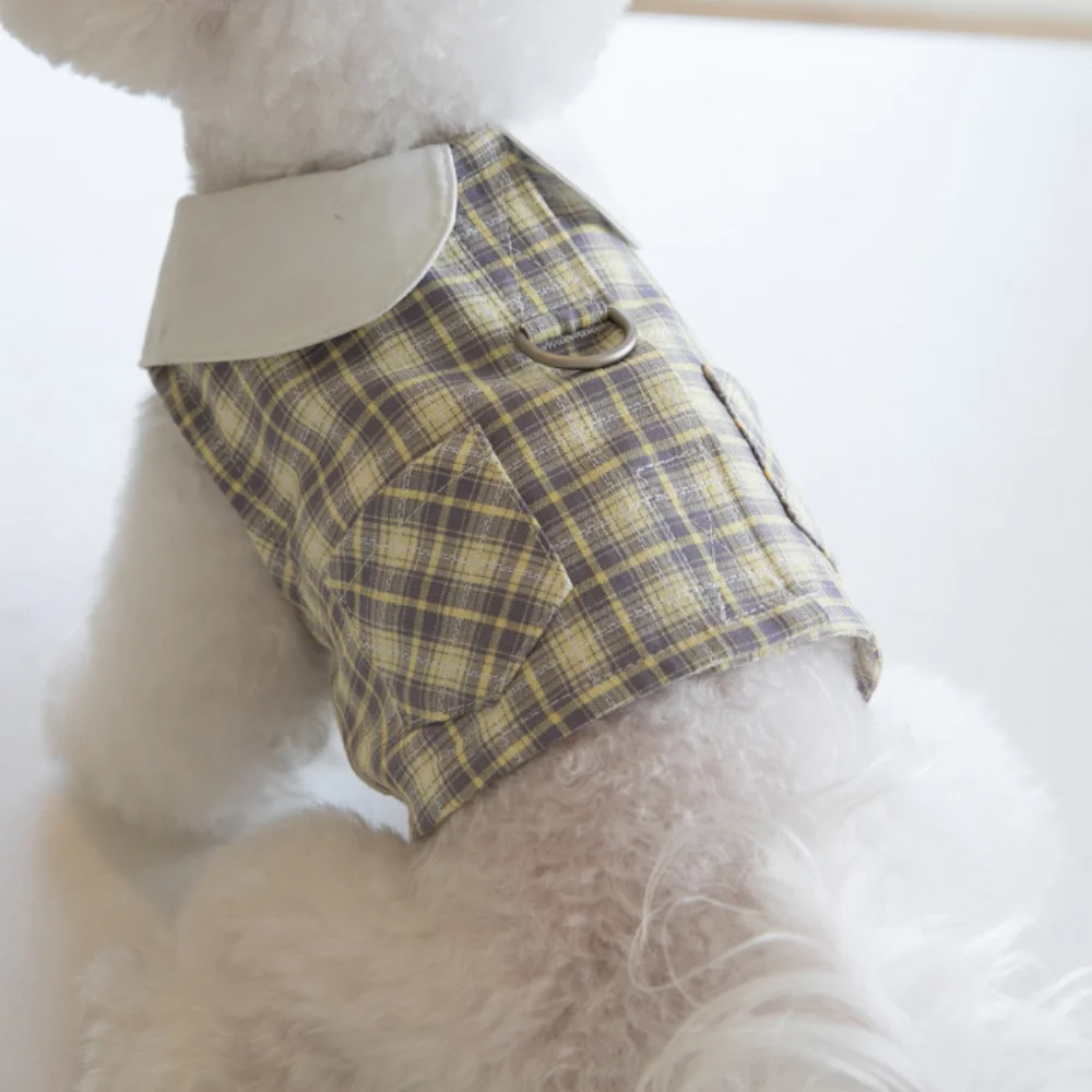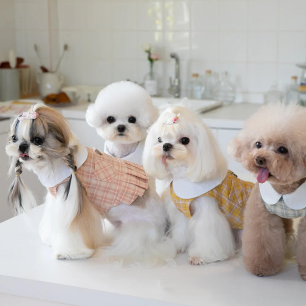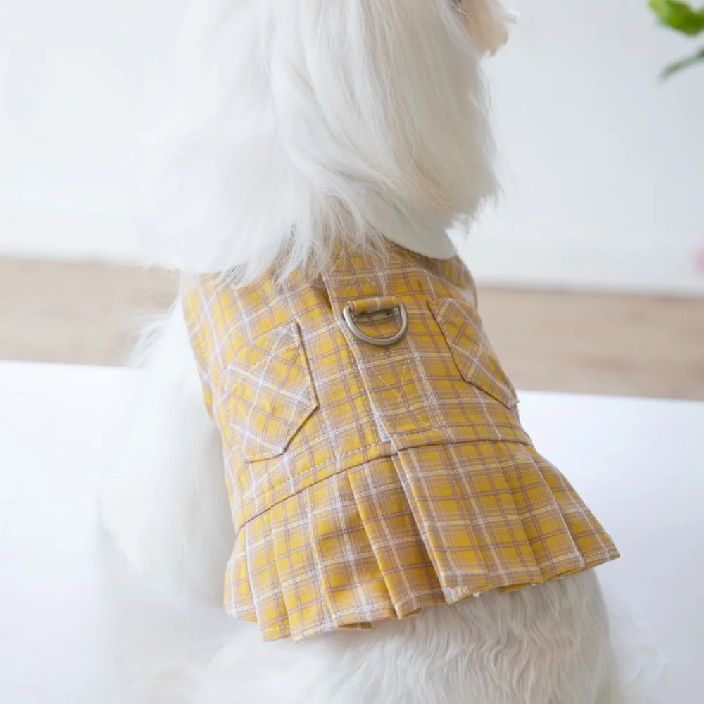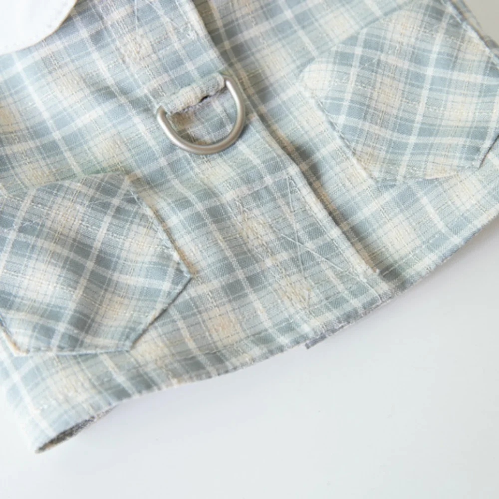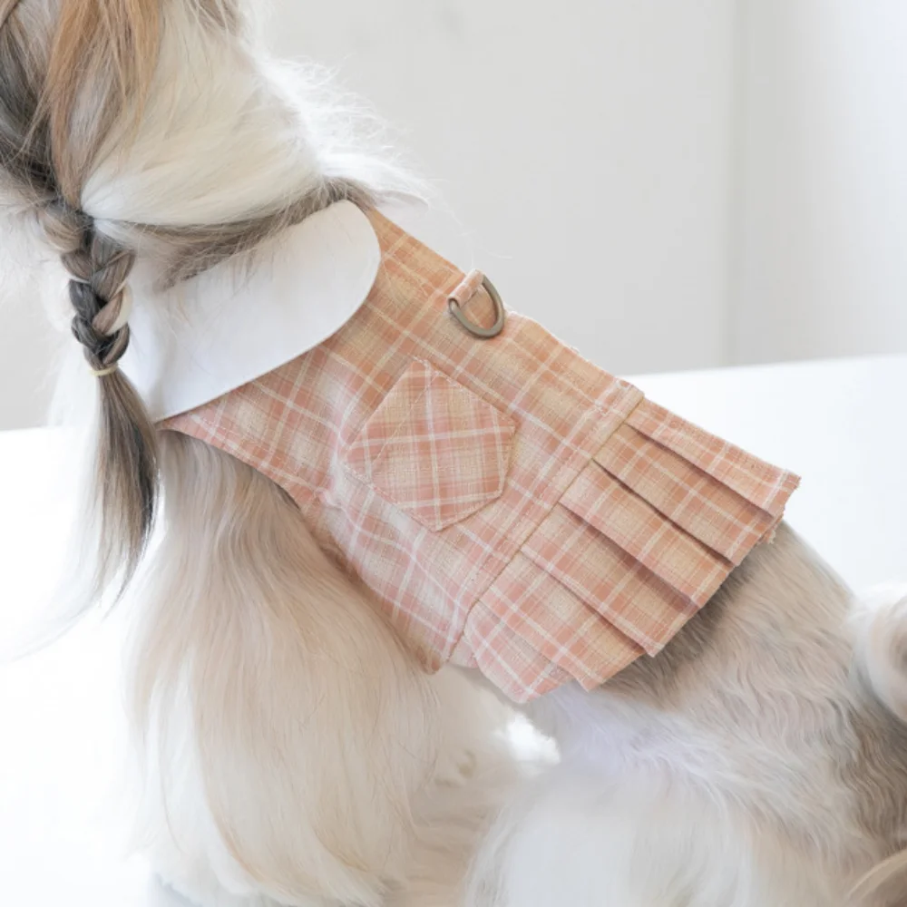Falda para perro con correa para el pecho a cuadros de primavera, Falda corta de peluche Bichon con lazo de tulipán, conjunto de arnés y correa para perro, accesorios para perros