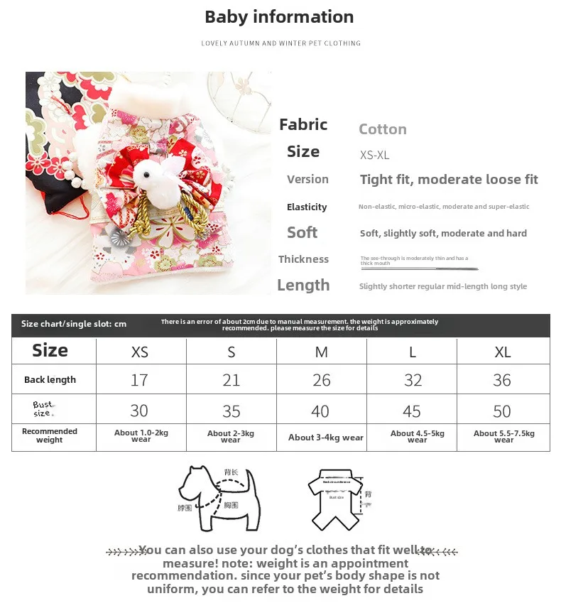 Esta chaqueta para perros presenta un diseño único de estilo japonés, que agrega un toque de elegancia y encanto al guardarropa de su mascota.