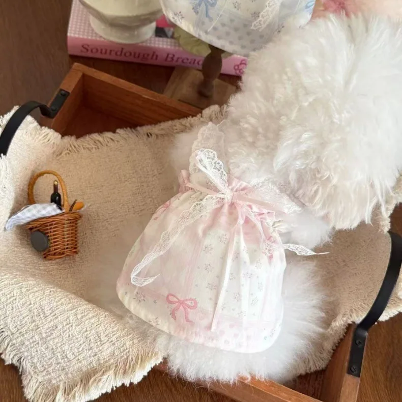 Falda de primavera y otoño para mascotas, perro, princesa, lazo de viento, corazón trasero, peluche para perros pequeños, decoración dulce, ropa para cachorros pequeños