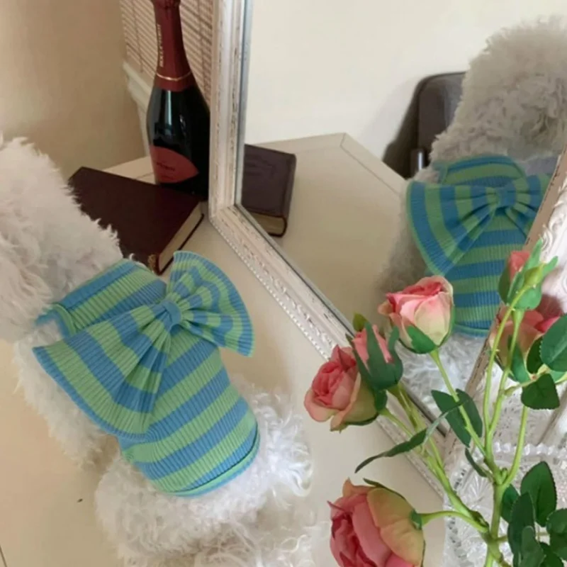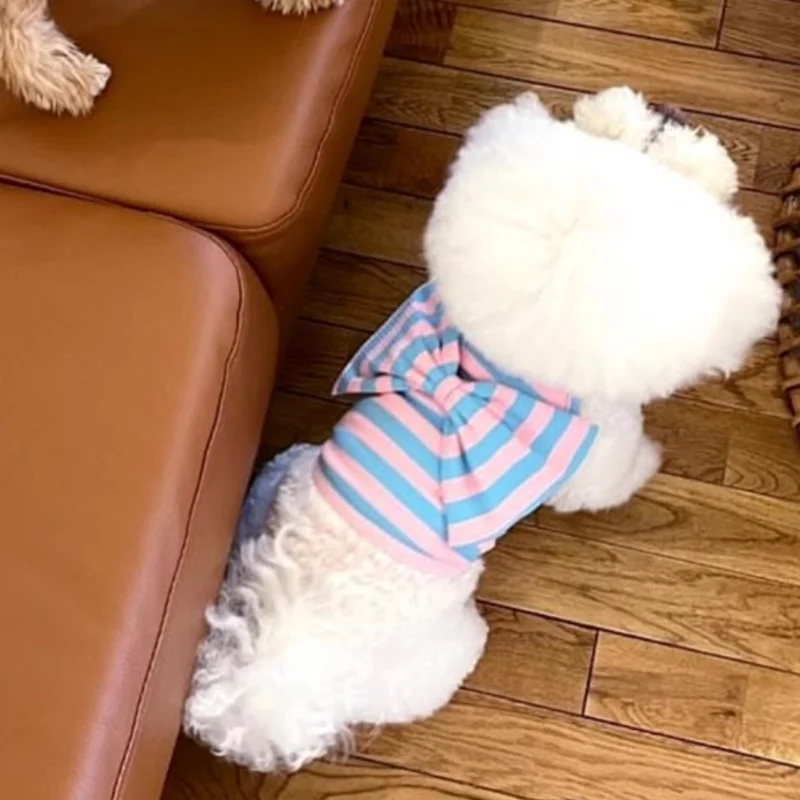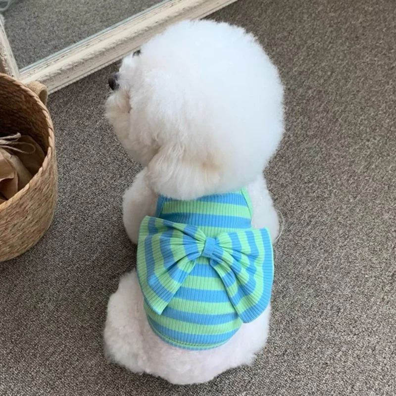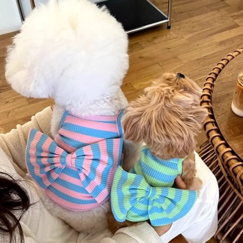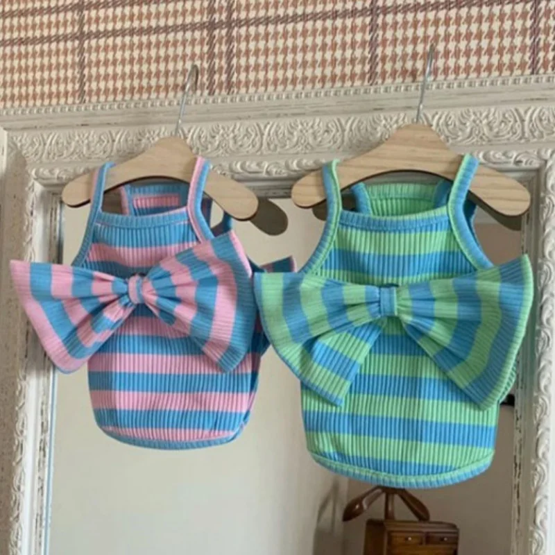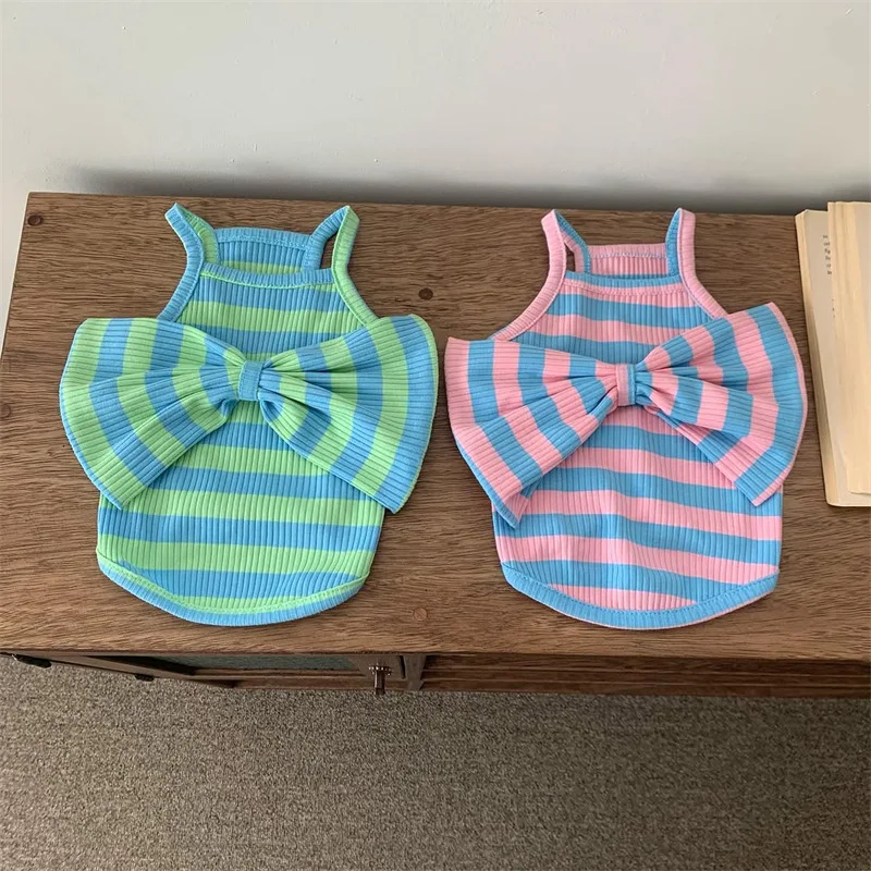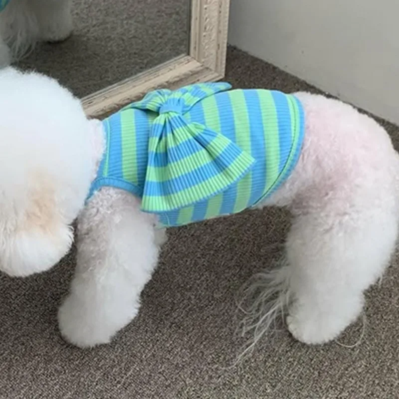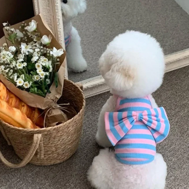 Falda de princesa con lazo para perro, ropa de verano para mascotas, lindo vestido con tirantes para cachorro, vestidos de gato a rayas a la moda, ropa para perros chihuahua