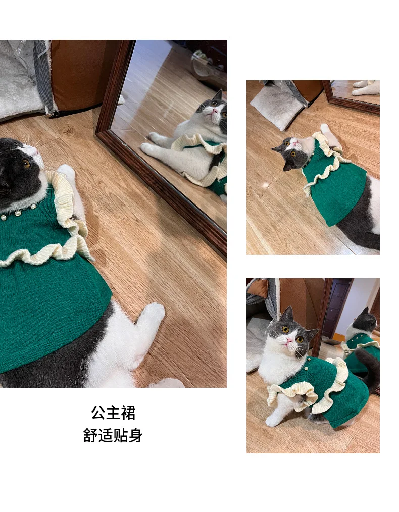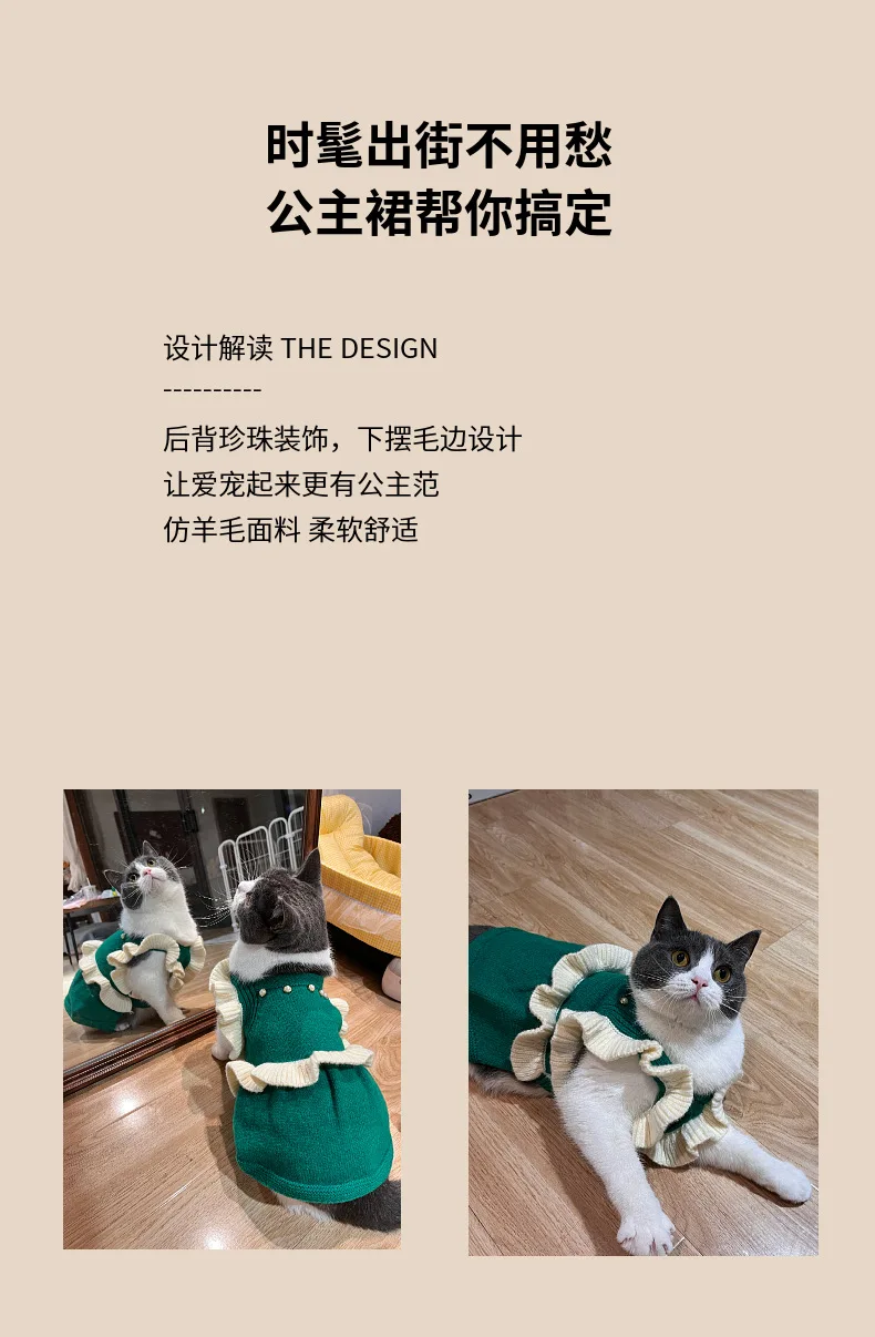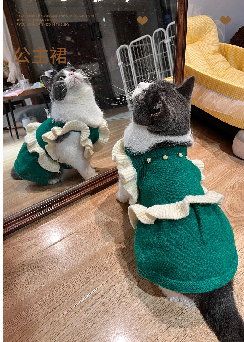 Falda de princesa de otoño/invierno para mascotas, ropa tejida para gatos, vestido de Navidad, bonito perro pequeño y mediano, Otoño/Invierno