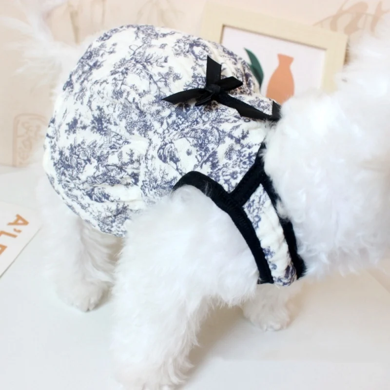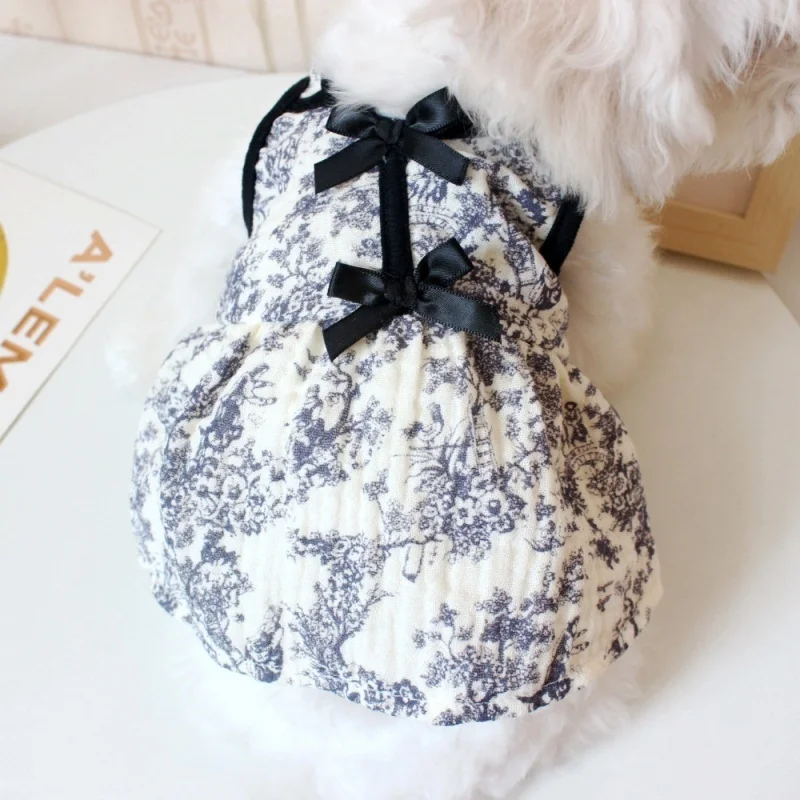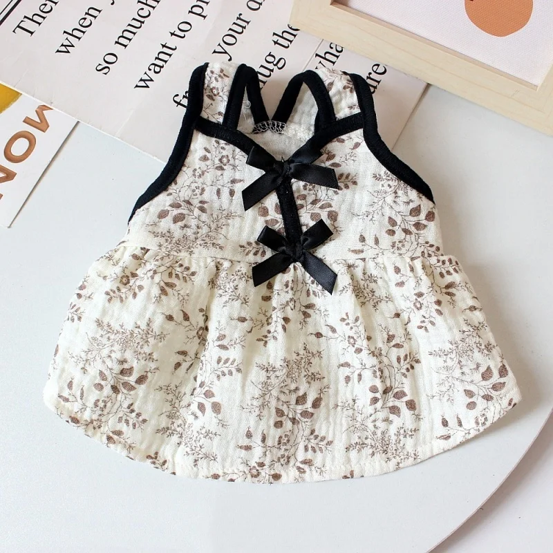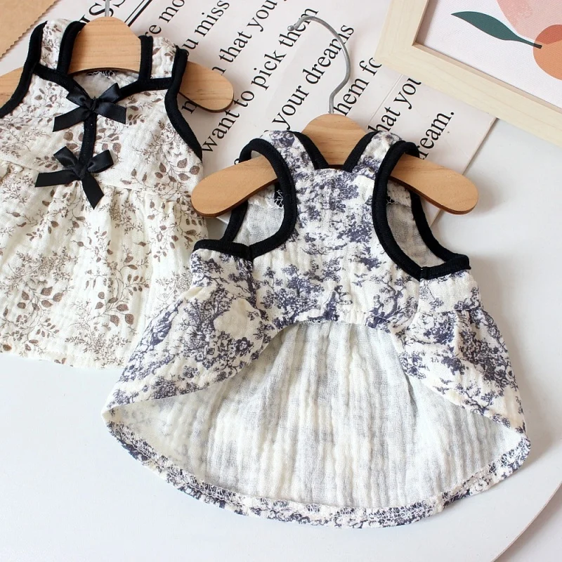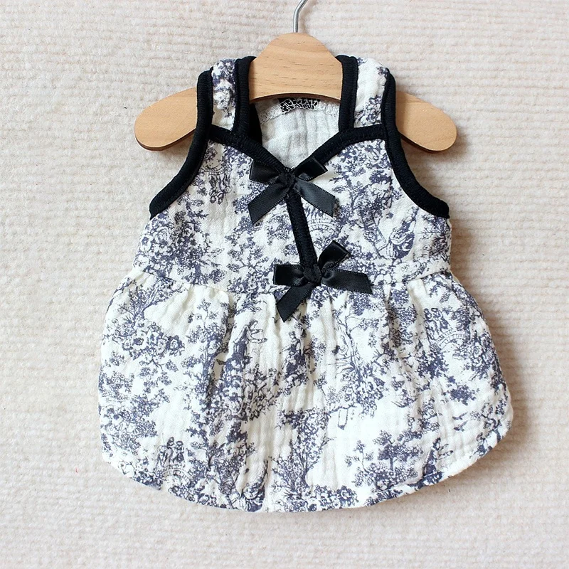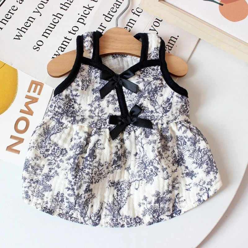 Falda de princesa Retro para perro, ropa estampada a la moda para perro, vestido con tirantes para cachorro de verano, falda de hilo de algodón con lazo de encaje negro, disfraz para mascota