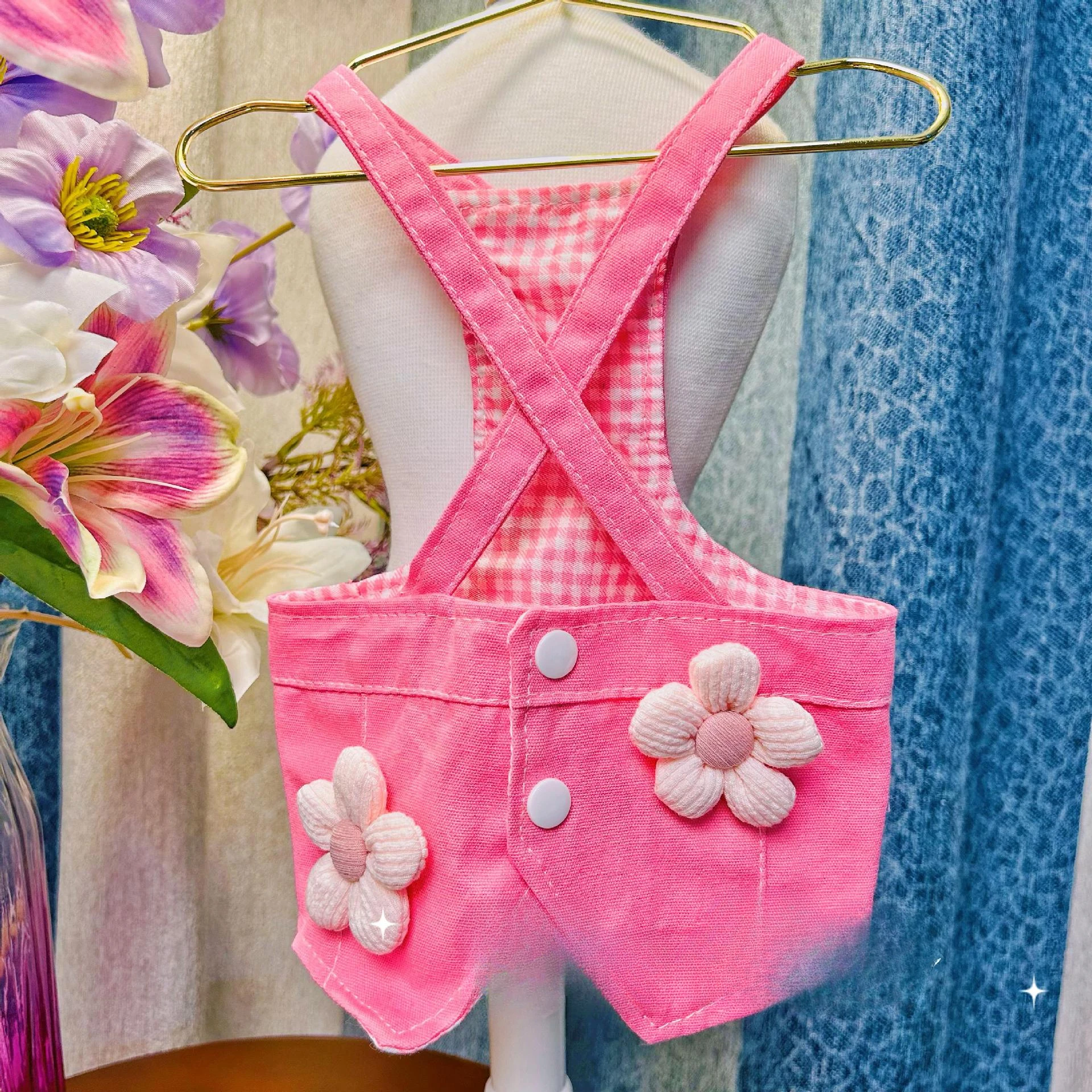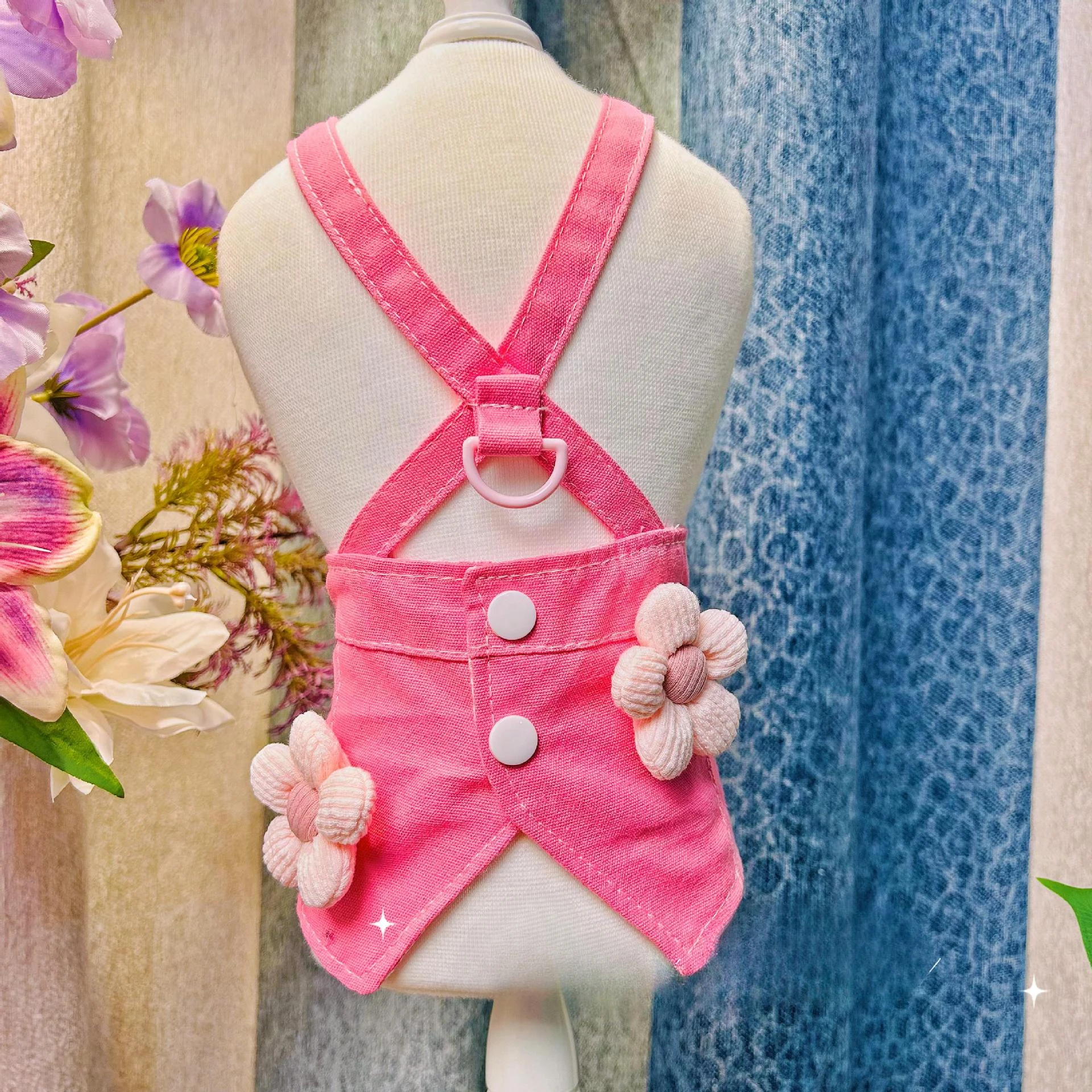 Falda rosa con tirantes de flores pequeñas para perros y gatos, vestidos para perros pequeños, ropa para cachorros y mascotas