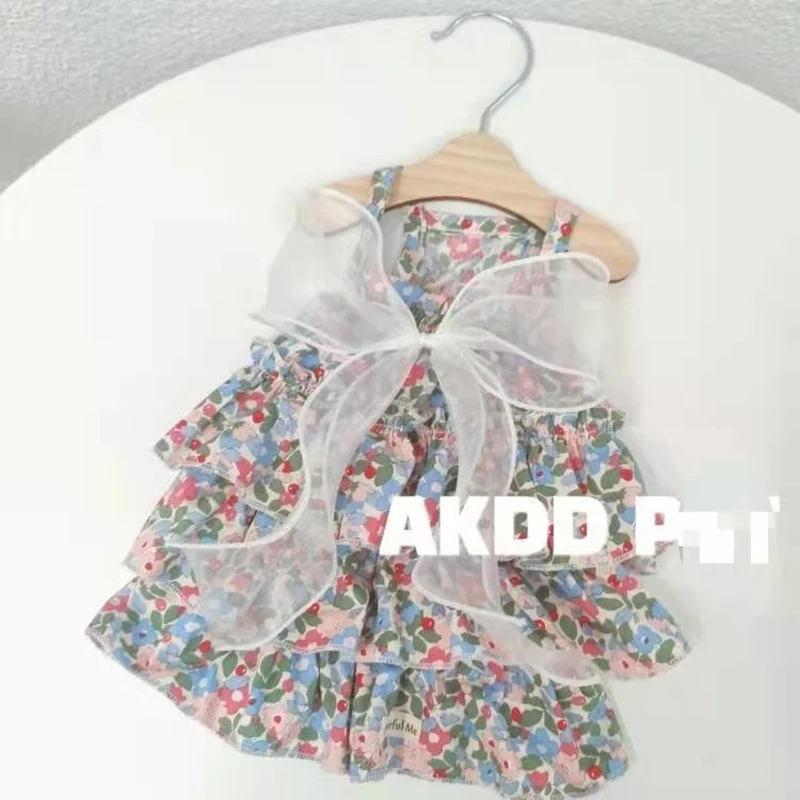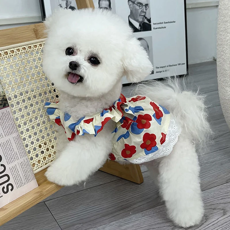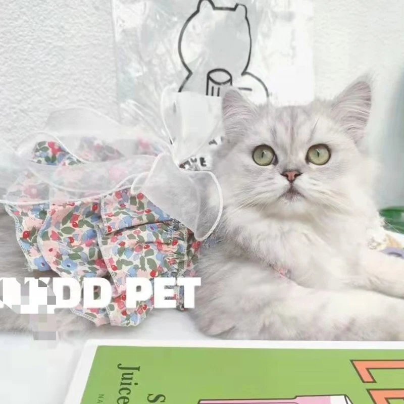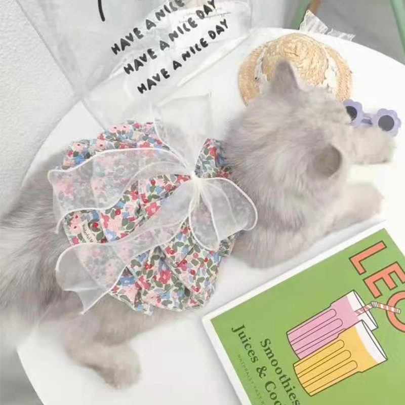 Falda de malla floral para mascotas, material de algodón, suave y cómoda, agradable para la piel y delicada. Diseño floral y de malla, estilo princesa fresco y dulce. Hay diferentes estilos de colores disponibles.