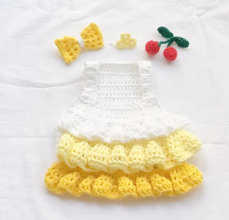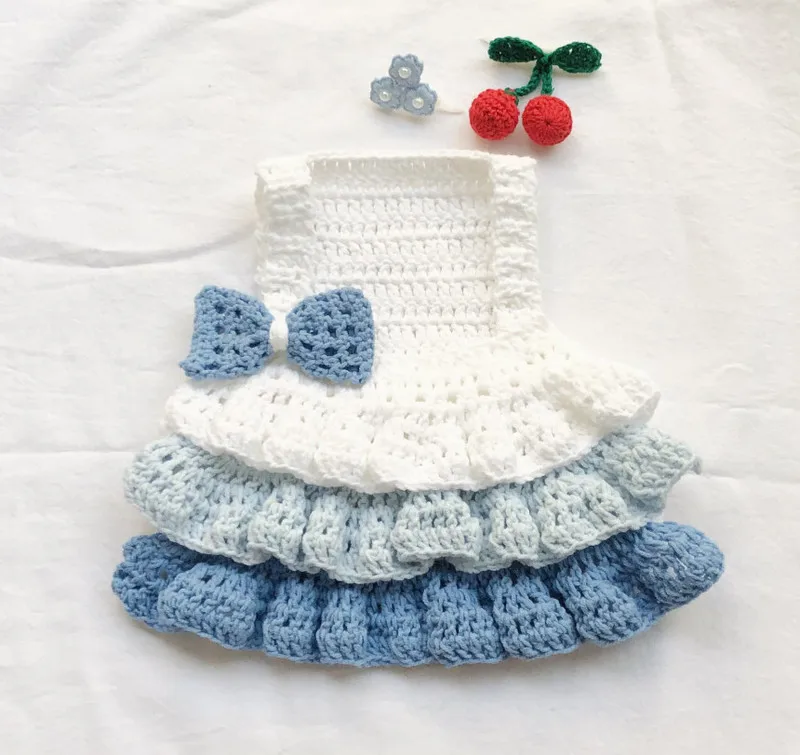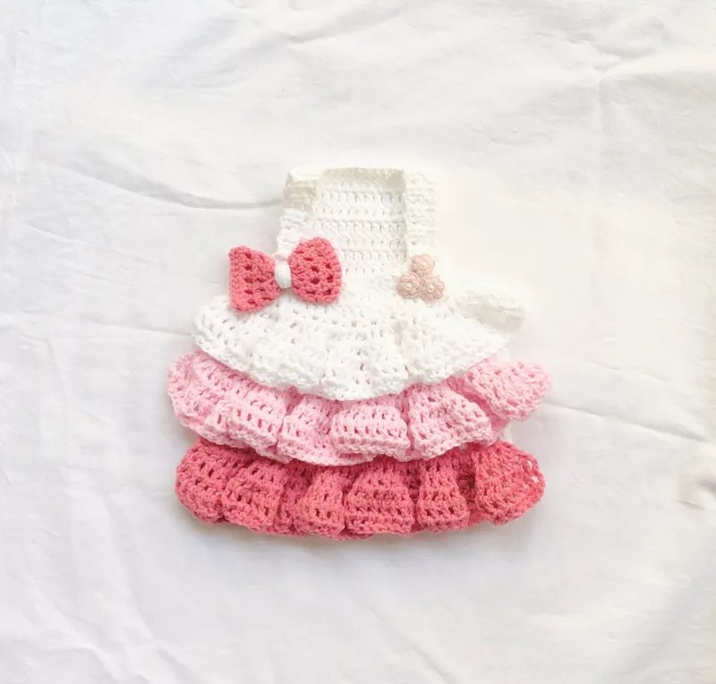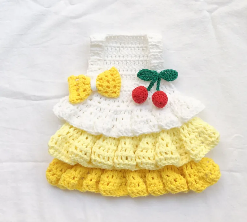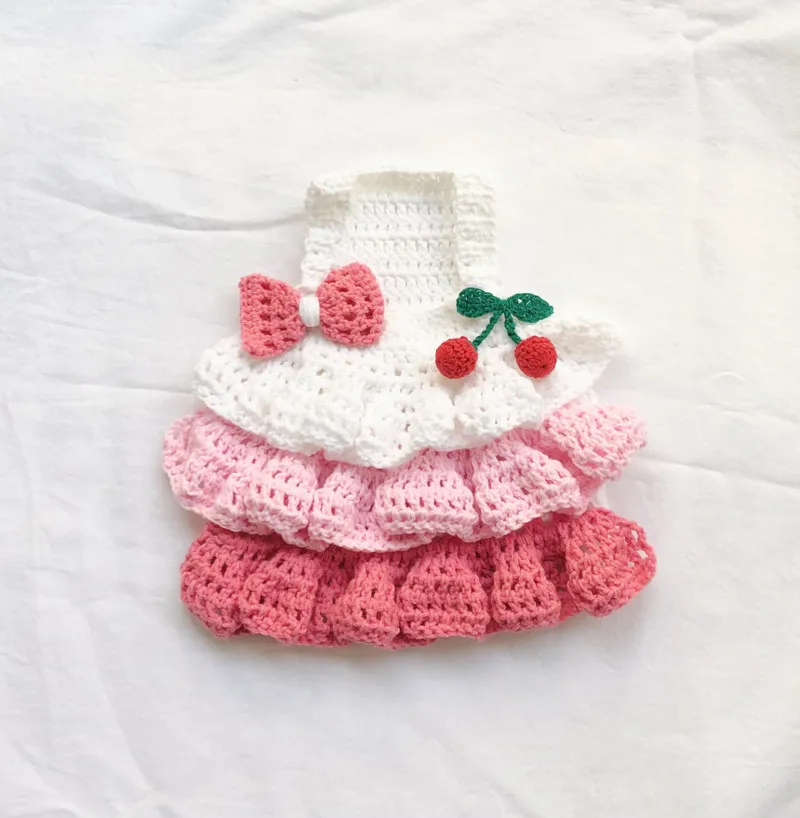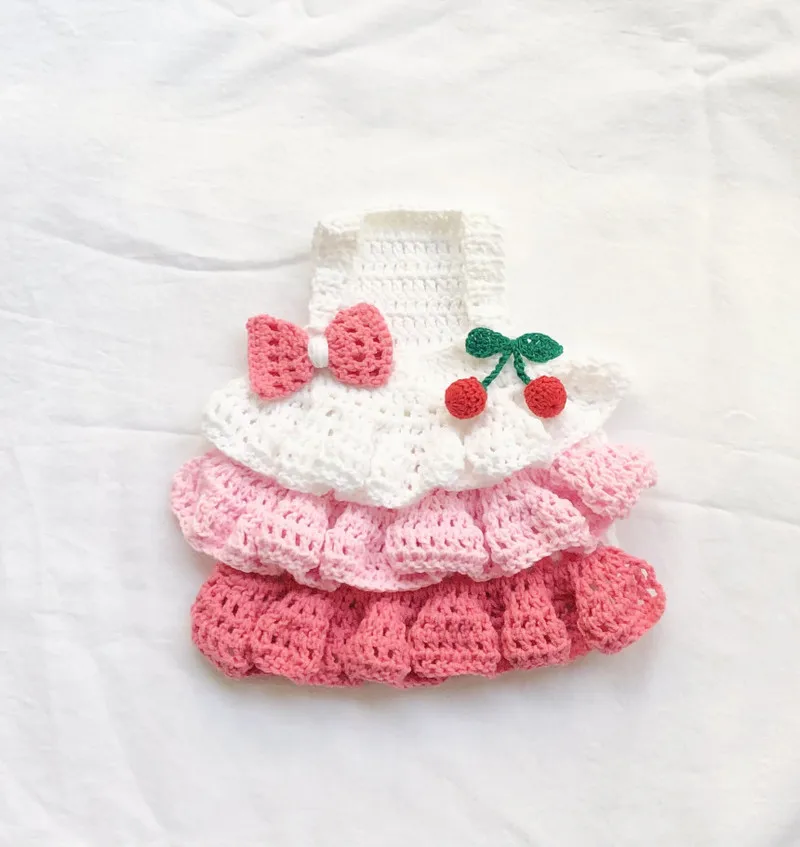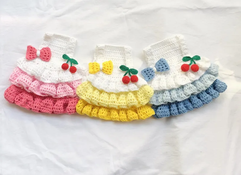 Falda con tirantes de cereza tejida con lazo de primavera para perros y gatos, falda con tirantes de punto bonita, ropa para perros, chaleco para perros, disfraz para perros
