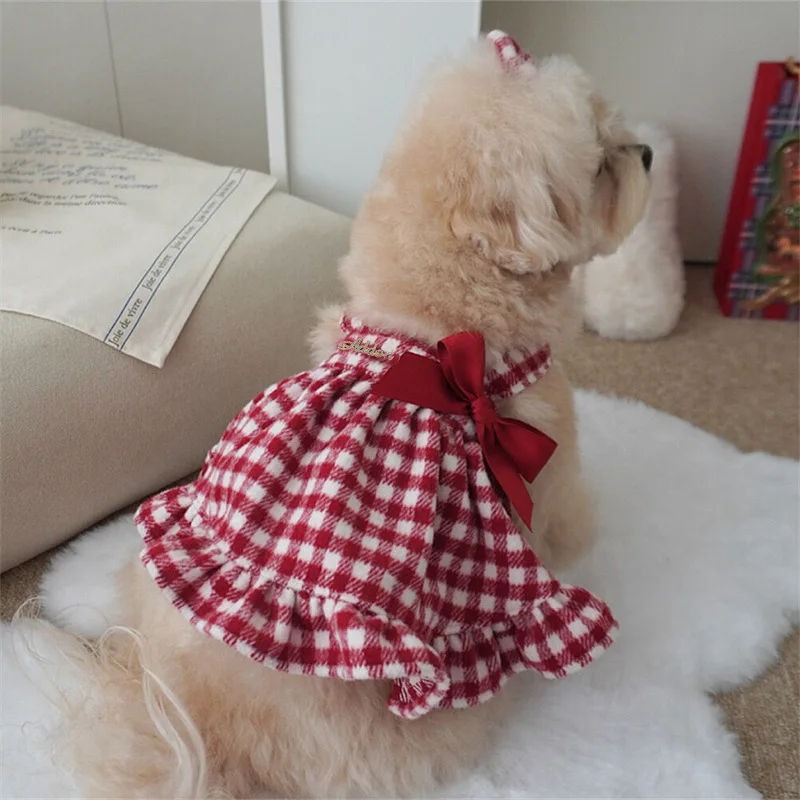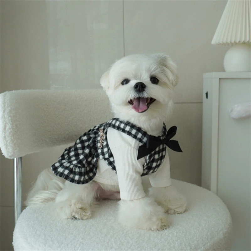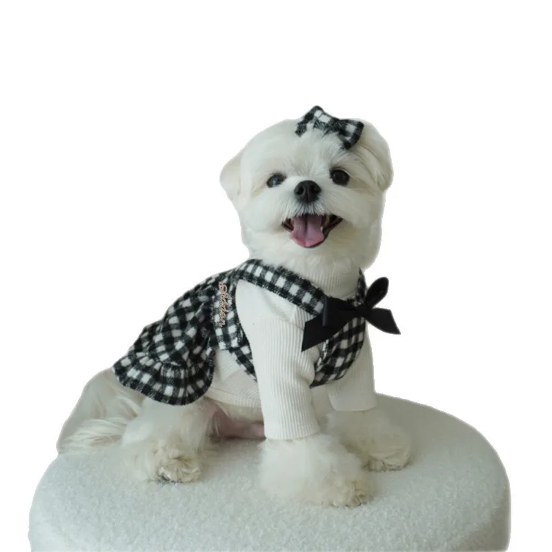 Falda con tirantes a cuadros para otoño/invierno para mascotas, chaleco con lazo a cuadros para gatos, abrigo para perros pequeños y medianos para Navidad y cumpleaños