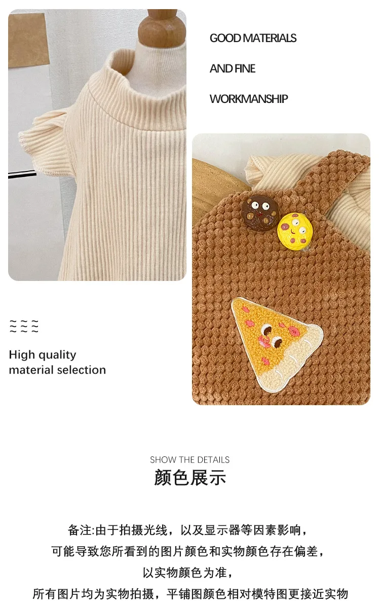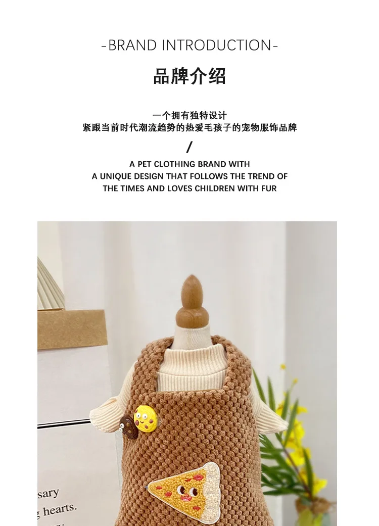 Falda con tirantes de felpa para mascotas, ropa para mascotas de otoño/invierno, ropa gruesa para mascotas, abrigo bordado bonito, ropa para cachorros para perros pequeños